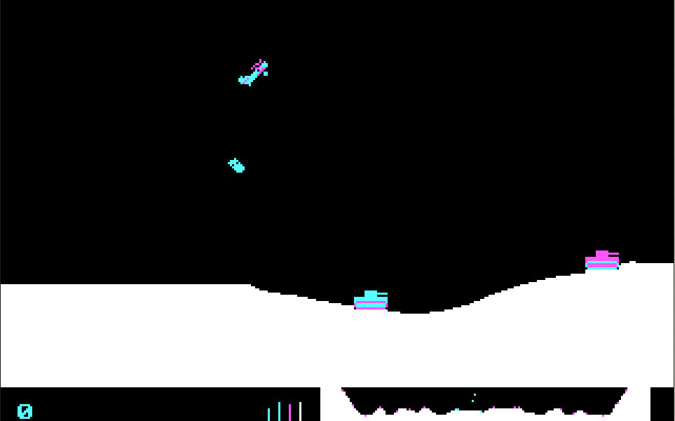 Самолётик. Может лететь, может стрелять из пулемёта, может кидать бомбы. Летать было весело, но цель мы не знали и пытались всё убить. Но всегда не хватало патронов, потому в итоге разбивались. Можно было играть против компьютера, а в более поздних релизах появилась поддержка игры против человека через СОМ-порт или модем.