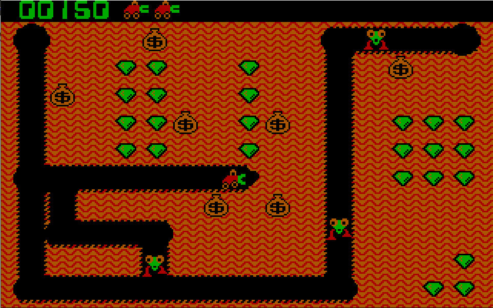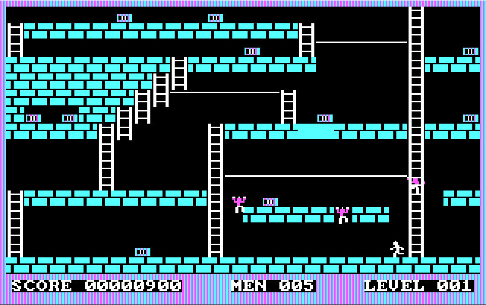 Тоже одноэкранная игра, но в этот раз вроде как написанная именно для персоналок. Задача — собрать все ящики на уровне, тогда открывается переход на следующий — и до туда ещё надо добежать. Чему активно мешают враги, для борьбы с которыми можно копать ямы.