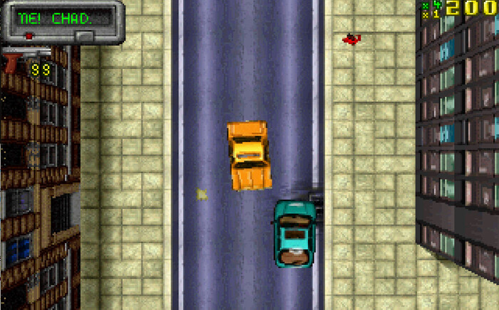 Первая часть GTA. Пока ещё простая аркада с видом сверху.
