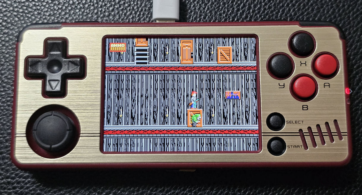 Заставка игры — постер фильма и бегущая строка. Дурное управление, возрождающиеся враги, вид сверху — и я в это ко всему прочему играл на роботроне с черно-белым монитором. Другой доступной игрой был бармен.