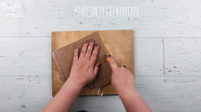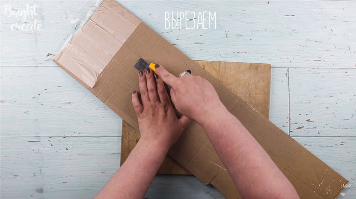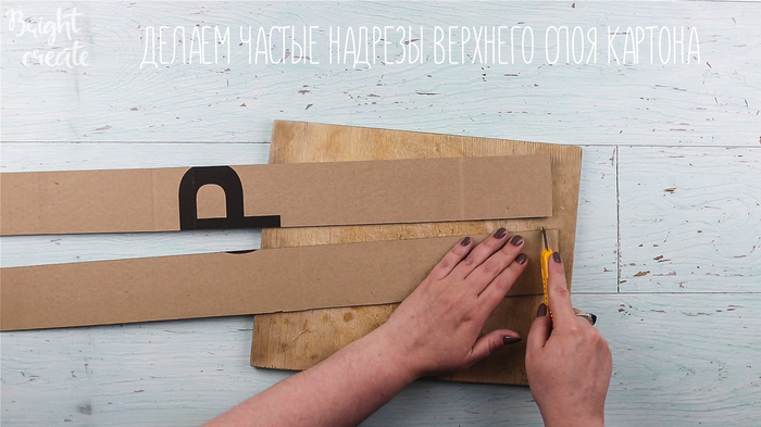 Для того, чтобы картон легко гнулся и принимал нужную нам форму, мы делаем частые надрезы его верхнего слоя.