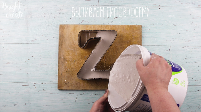 После того как вы склеили буквы и полоски, тщательно еще залейте клеем все стыки, чтобы не было дырок. Потому что при заливки гипса он может пробегать в эти дырки, что не желательно.