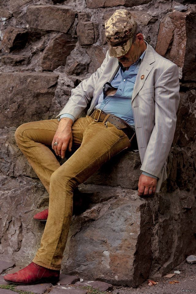 А потом в обед там же и так же. От ветра свалился в той же позе. Как манекен.