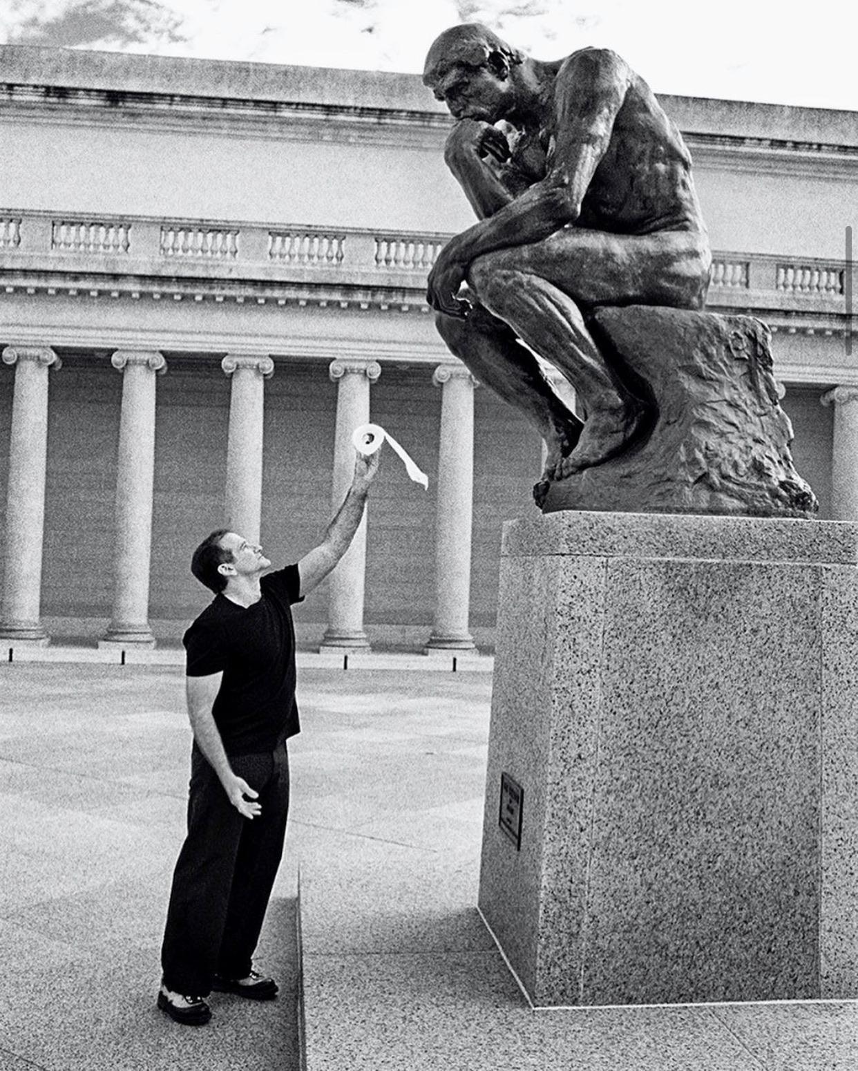 7 Geekabu Держи, братан 5 лет назад Источник Мыслитель Скульптура Туалетная бумага Туалетный юмор Черно-белое фото Робин Уильямс Ещё 0