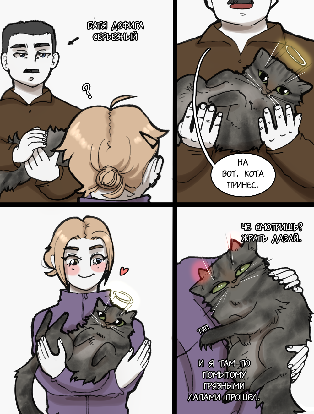 Кот хорошо себя ведет только на руках у бати