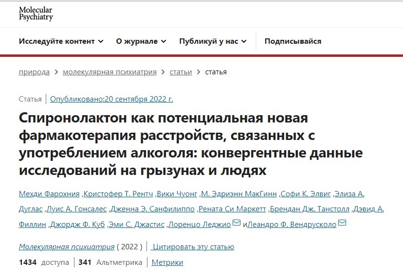 Клинические испытания все еще необходимы, чтобы определить, может ли спиронолактон быть эффективным средством лечения расстройств, связанных с употреблением алкоголя, но если это так, то это может быть дешевый и безопасный способ помочь миллионам людей преодолеть проблемы, связанные с алкоголем.
