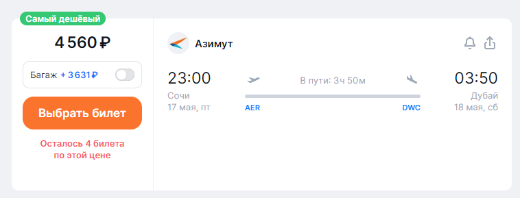 Сочи — Дубай за 4560 р. Вылет: 17 мая.