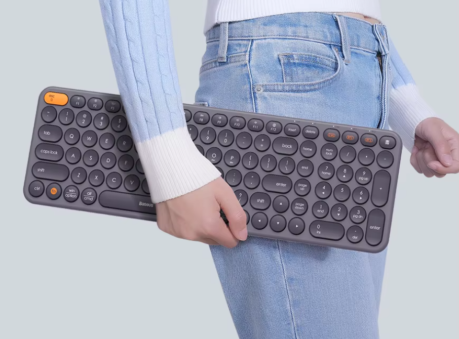 На корпусе расположено 84 клавиши разных цветов, что упрощает ориентирование. В наличии есть версии как с числовым блоком, так и без него, причем в обоих вариантах удобны стрелочные клавиши. Клавиатура работает на встроенном аккумуляторе и может одновременно подключаться к нескольким устройствам с возможностью легкого переключения между ними.