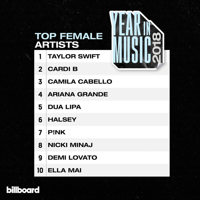 2 DELETED Десятка лучших певиц 2018 года по версии Billboard 6 лет назад Чарты Billboard основаны на продажах, ротациях на радио и других вещах, связанных с реализацией музыки Billboard Музыка Тейлор Свифт
