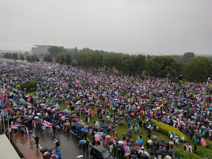 Протестующие подошли к дворцу независимости - снова, по традиции, пошёл дождь