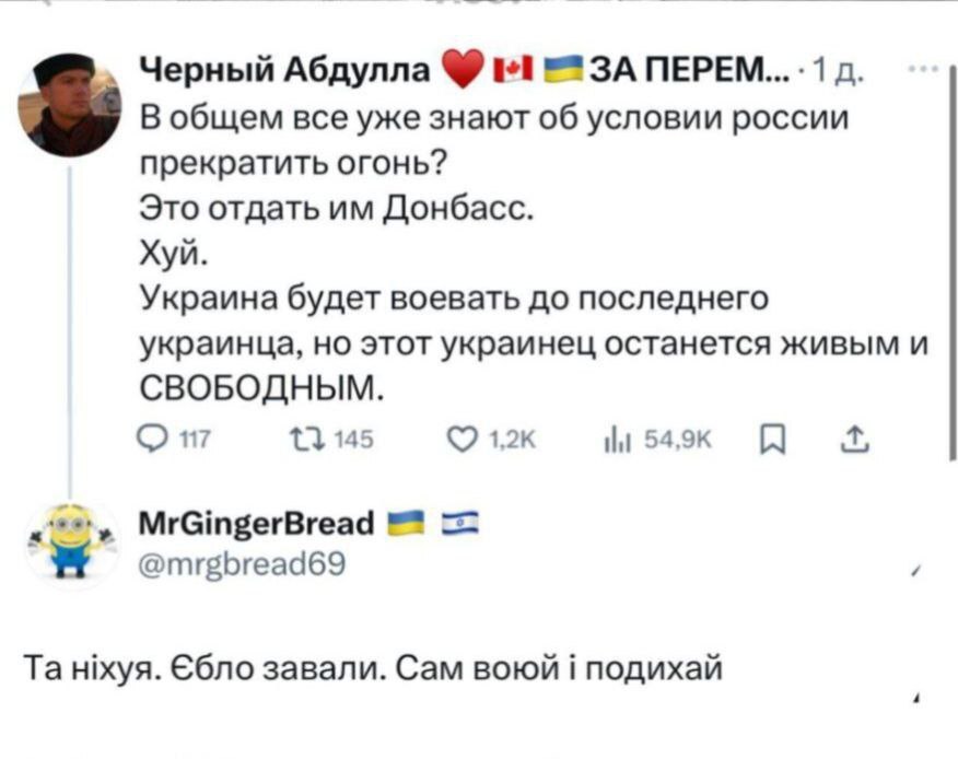 7828 Nikolaich0488 Политика Десятый наш, диванный батальон1 6 месяцев назад Юмор Политика X (Twitter) Мат Скриншот Комментарии Зашакалено Черный Абдула (Twitter) Россия и Украина Донбасс Украинцы 1K 41 17 11 2 1 1 Ещё 2