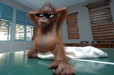 Детеныш орангутана, изъятый у контрабандистов в Индонезии.