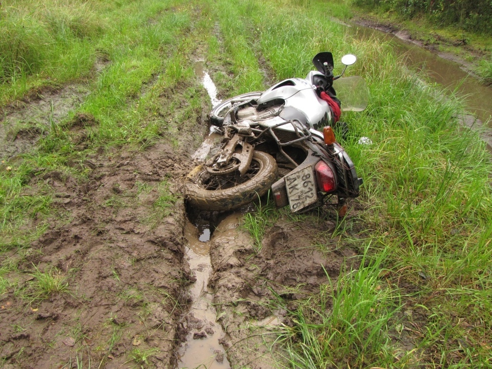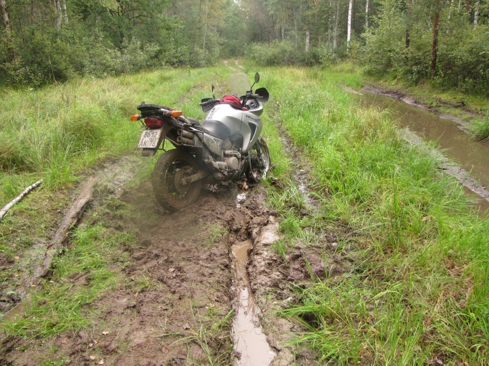 Я сам езжу на Трансляпе-650, и на раскисших говнах и в песке с его весом справляюсь с большим трудом. При моём росте в 180 и массе в 90 кг. Совершенно не могу представить себе аналогичный драйв, скажем, с Африкой, Варадерой или Гусём-1200, которые сами по себе тяжелее на 30-40 кг, а с полной туристической поклажей и полным баком они становятся неподъёмными как машина. Ехать ещё можно – но если встал, да ещё и завалился, то пиши пропало – встал напрочь.