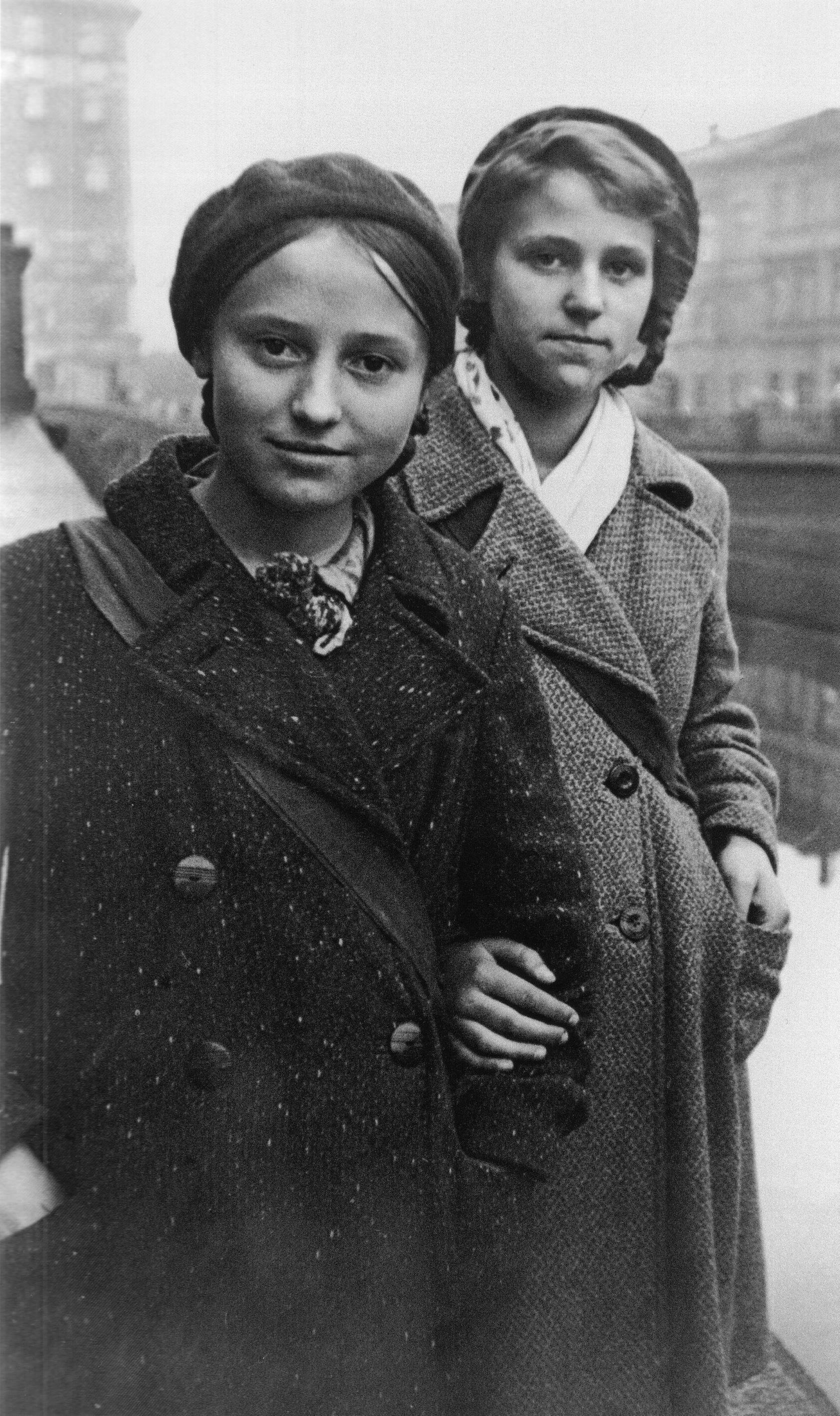 Школьницы Валя Иванова (слева) и Валя Игнатович, потушившие две зажигательные бомбы, упавшие на чердак их дома.