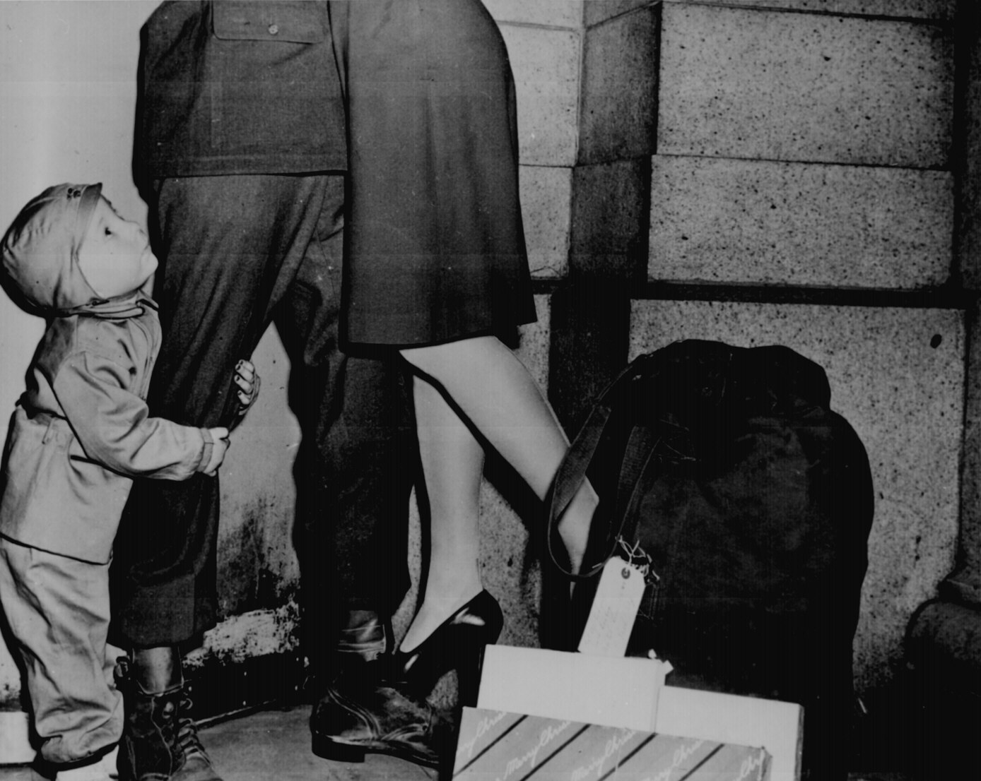 Жена и сын встречают мужа и отца, американского военного, приехавшего с фронта в неожиданный отпуск.