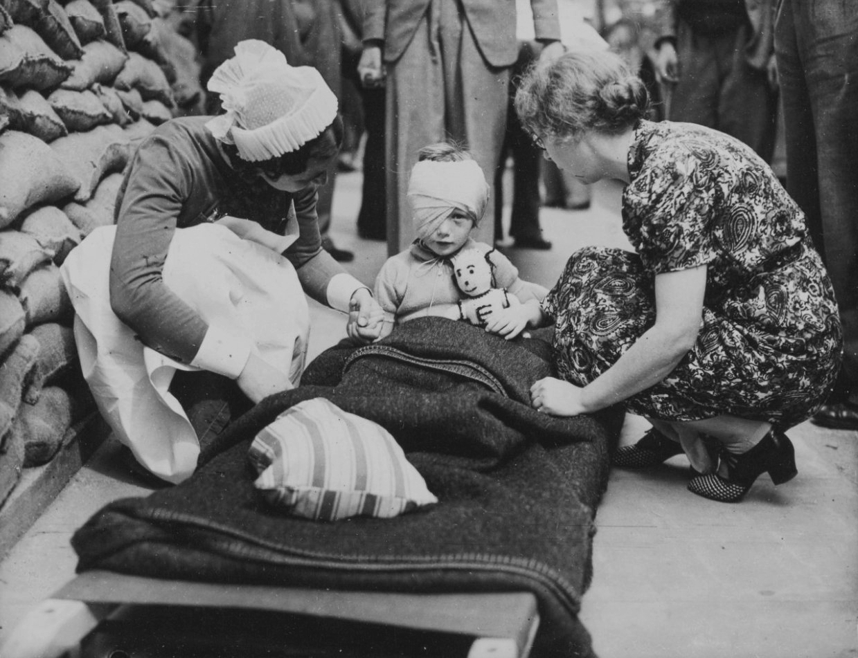 Британская девочка, раненая при налете люфтваффе на Лондон.