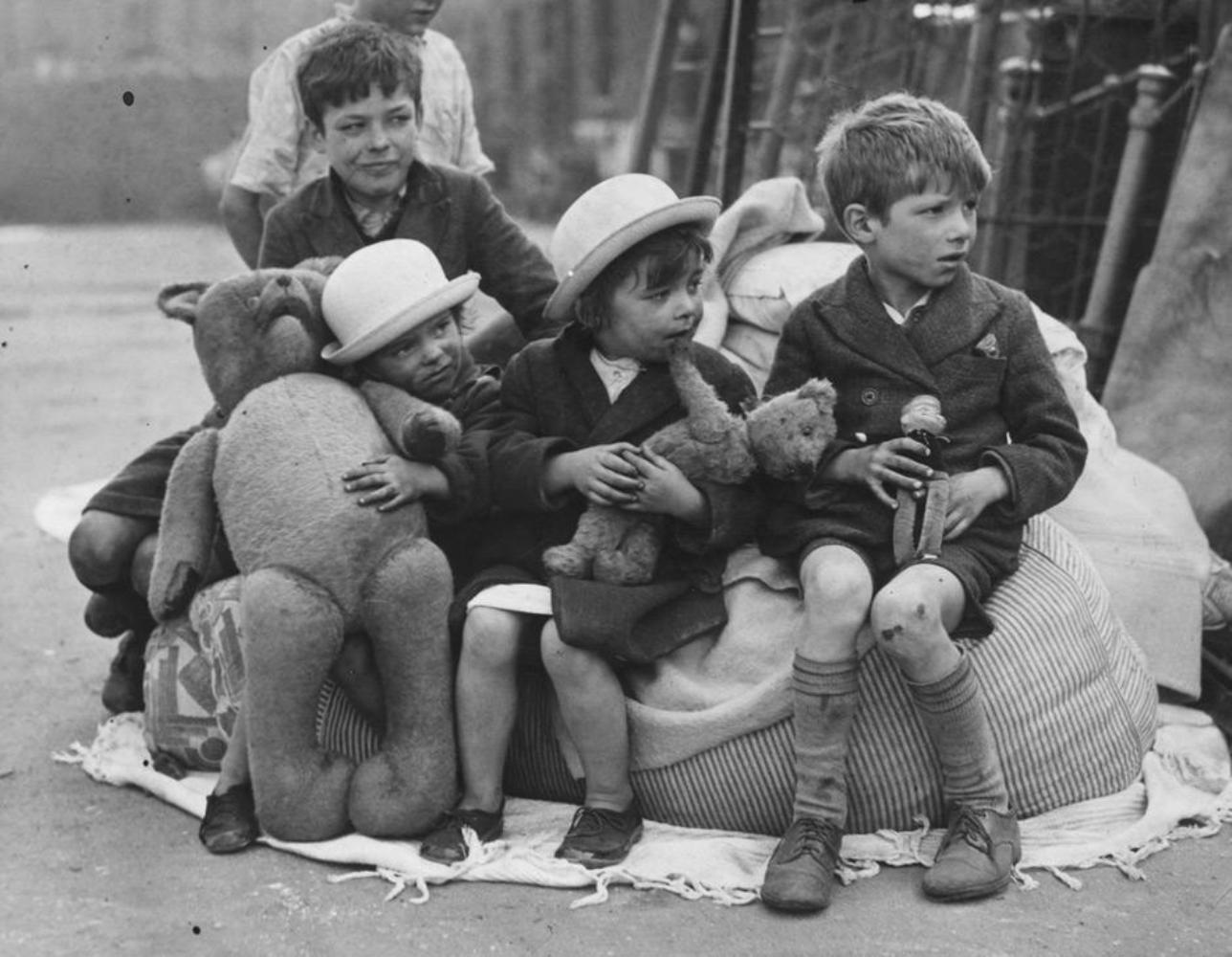 Лондонские дети смотрят на свой дом, разрушенный в ходе немецкого налета на город 15 сентября 1940 года.