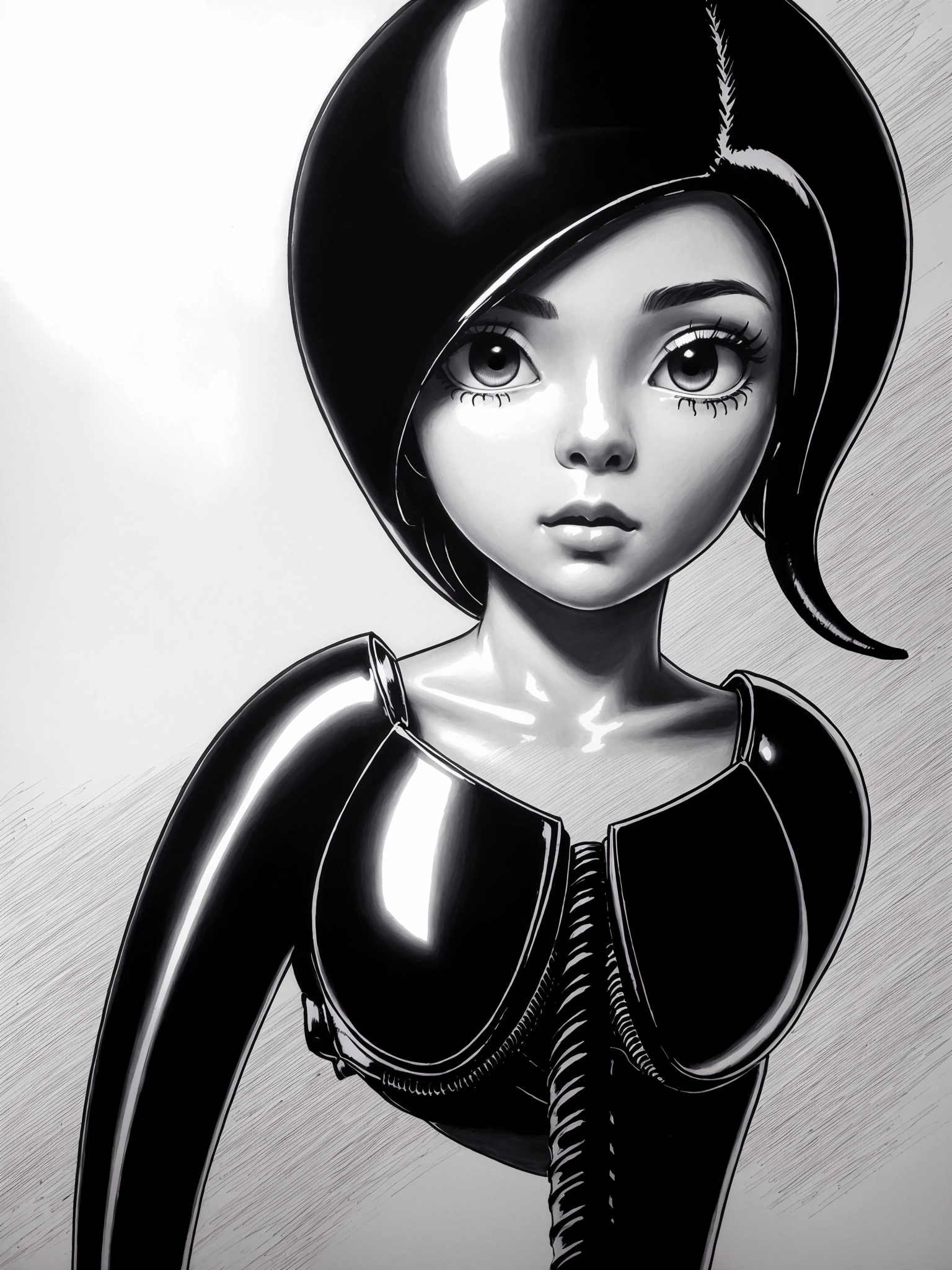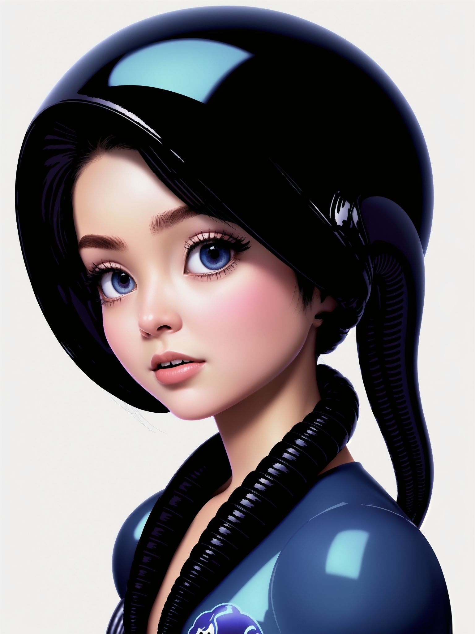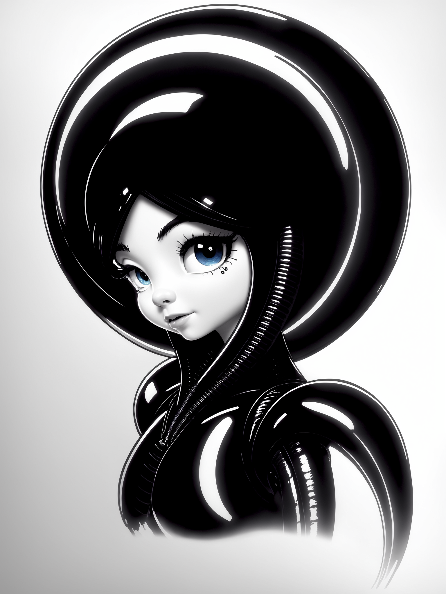 the famous beautiful picture portrait sweet cute beautiful pixar xenomorph is drawn with a soft pencil with small strokes on a landscape, simple lines