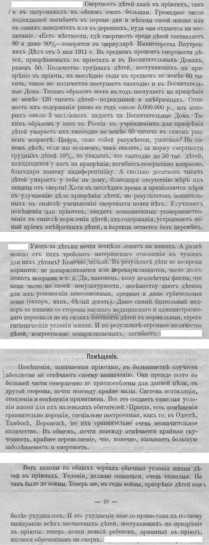 Источник: Б. П. Бруханскiй. "Борьба съ дѣтской смертностью въ Россiи и роль попечительства объ охранѣ материнства и младенчества въ этой борьбѣ." Петроградъ. Государственная типографiя. 1916 г.