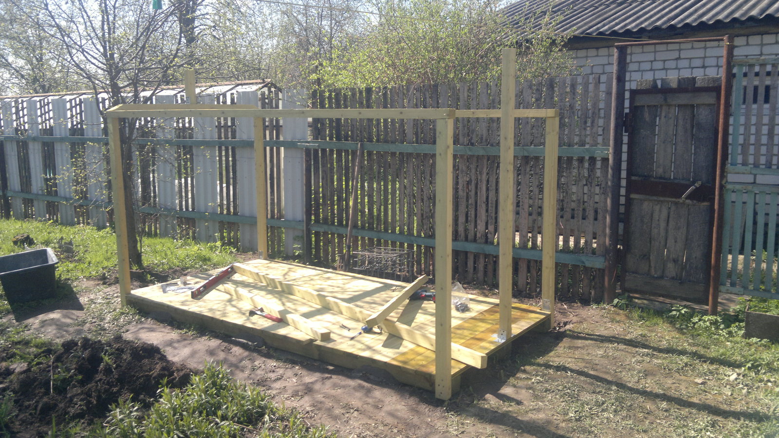 5) Далее собираем каркас из бруса – в моём случае 50*70мм. Почему именно 50*70? Ну во первых 50*50 по мне маловато, хотя многие так и делают, а 70*70 не было, а возможно и не твообще, ну а 100*100 перебор (эрибор)). Если честно для каркаса лучше брус с равными сторонами!