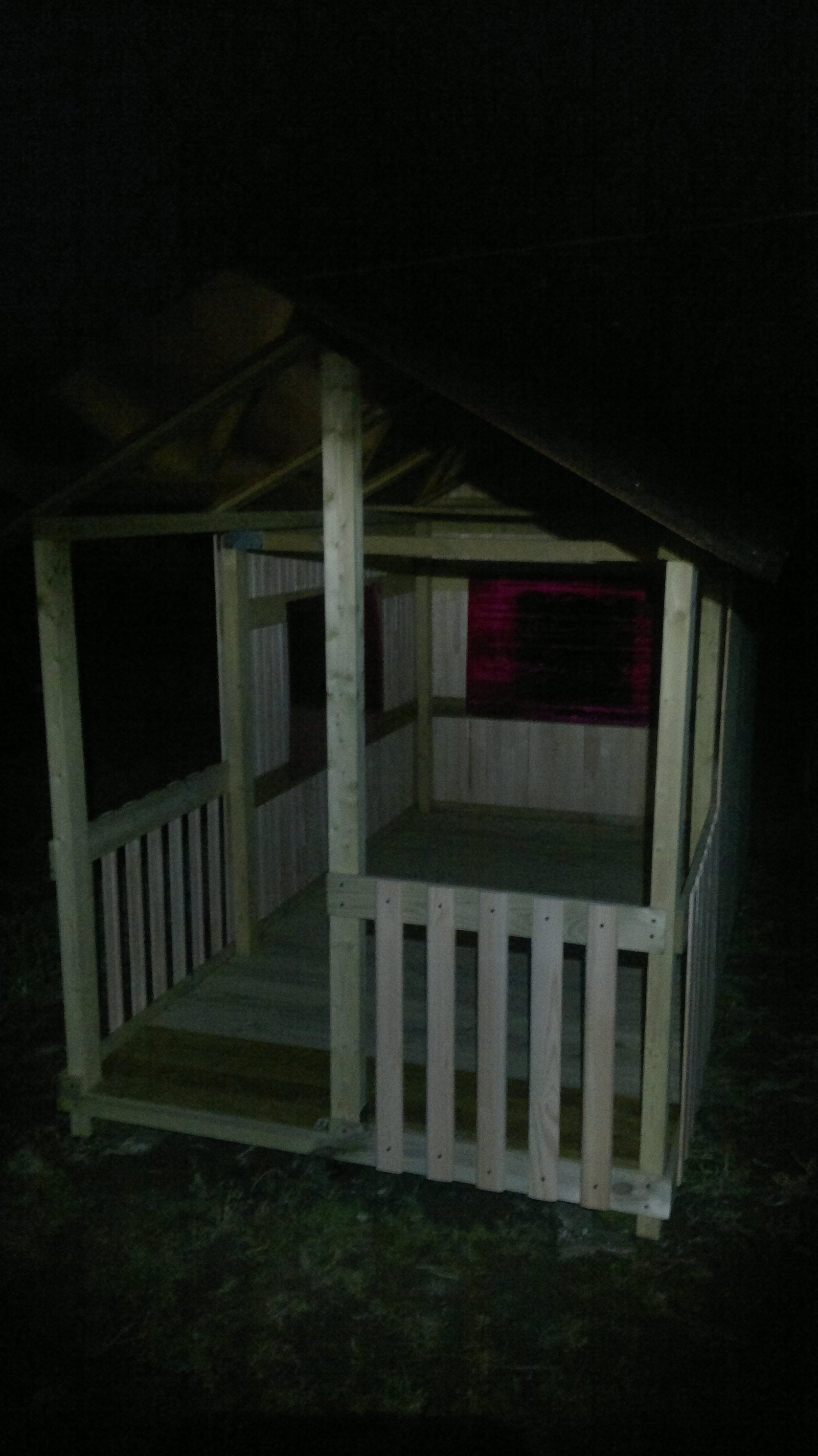 9) Теперь облицовываем всё вагонкой. Монтируем окна, двери. Почти готово! )))
