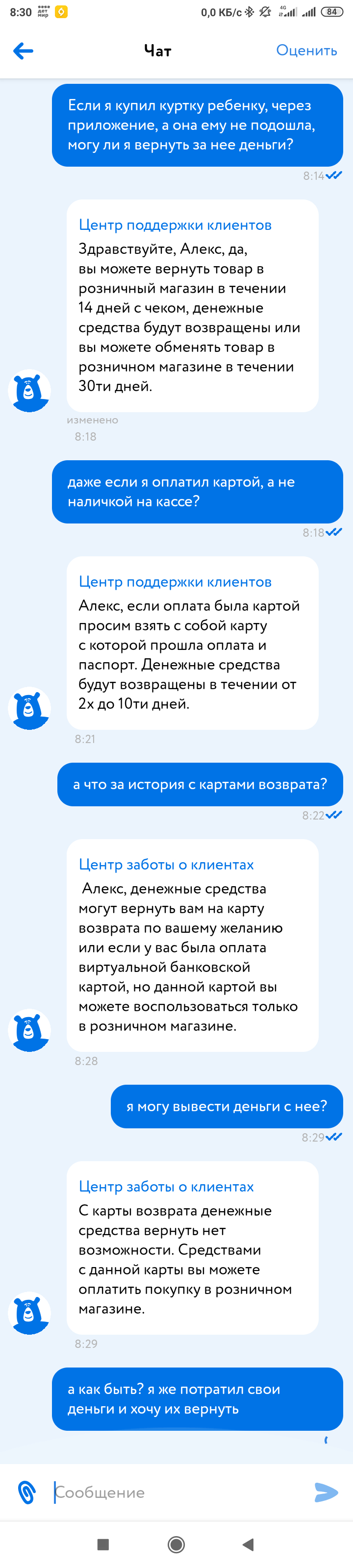 Передо мной стояла женщина, которая возвращала ботинки с обнаруженным браком, говорила приехала как смогла, сама не местная. Что ей дали? Правильно, карту возврата.