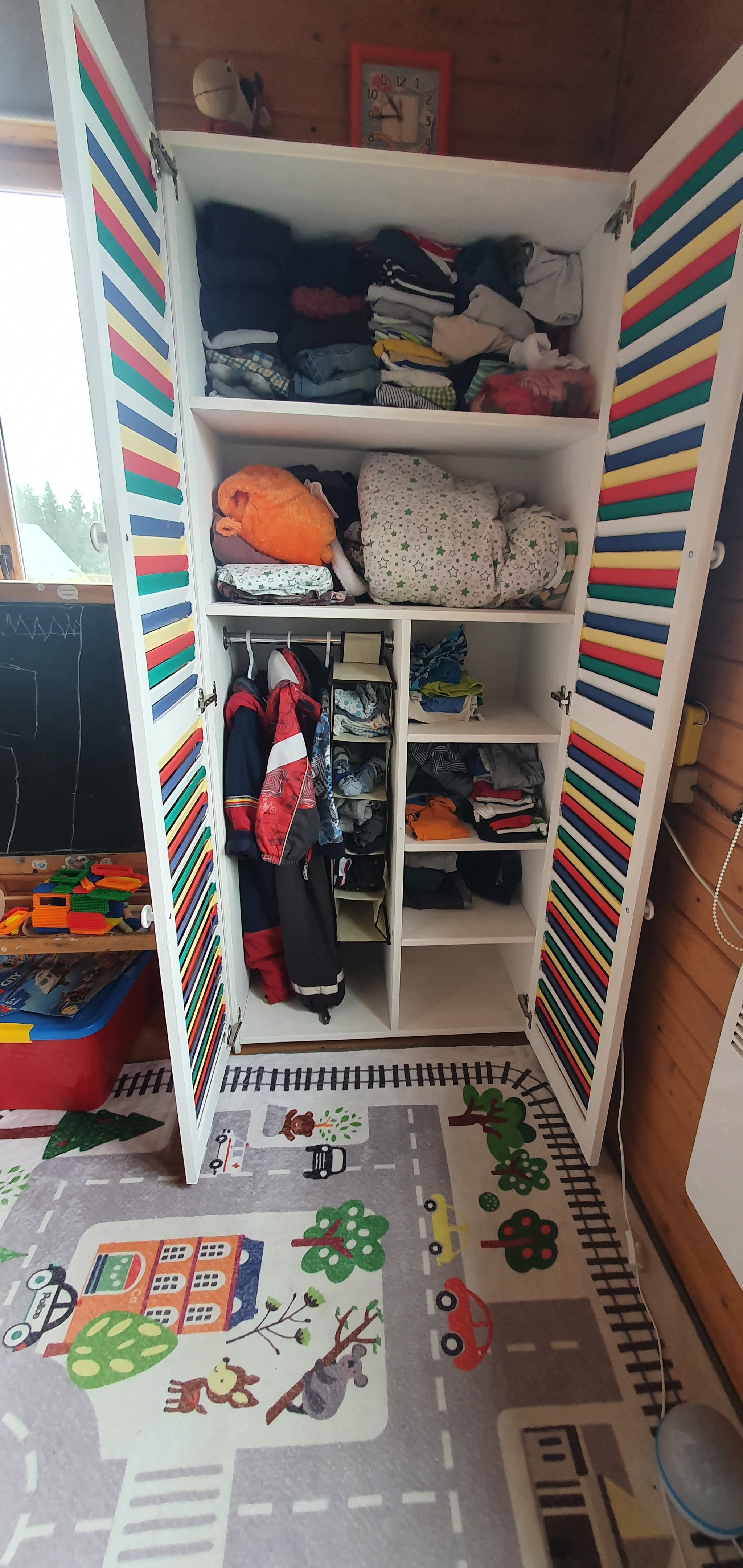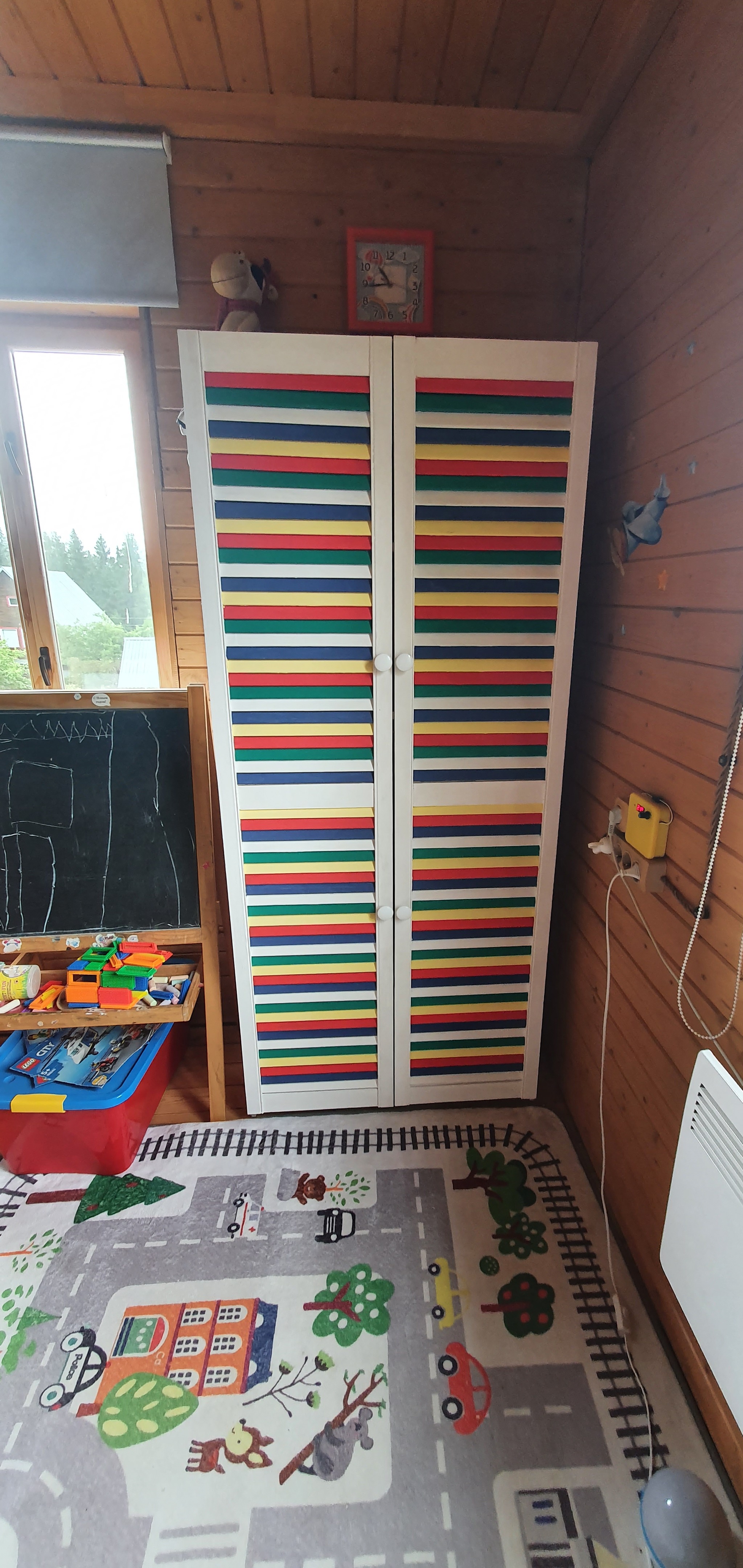 P.S. покраска жалюзийных дверей в разные цвета тот ещё геморрой, потратила, наверно, недели 3, косяков, конечно, много, но сыну очень понравилось)
