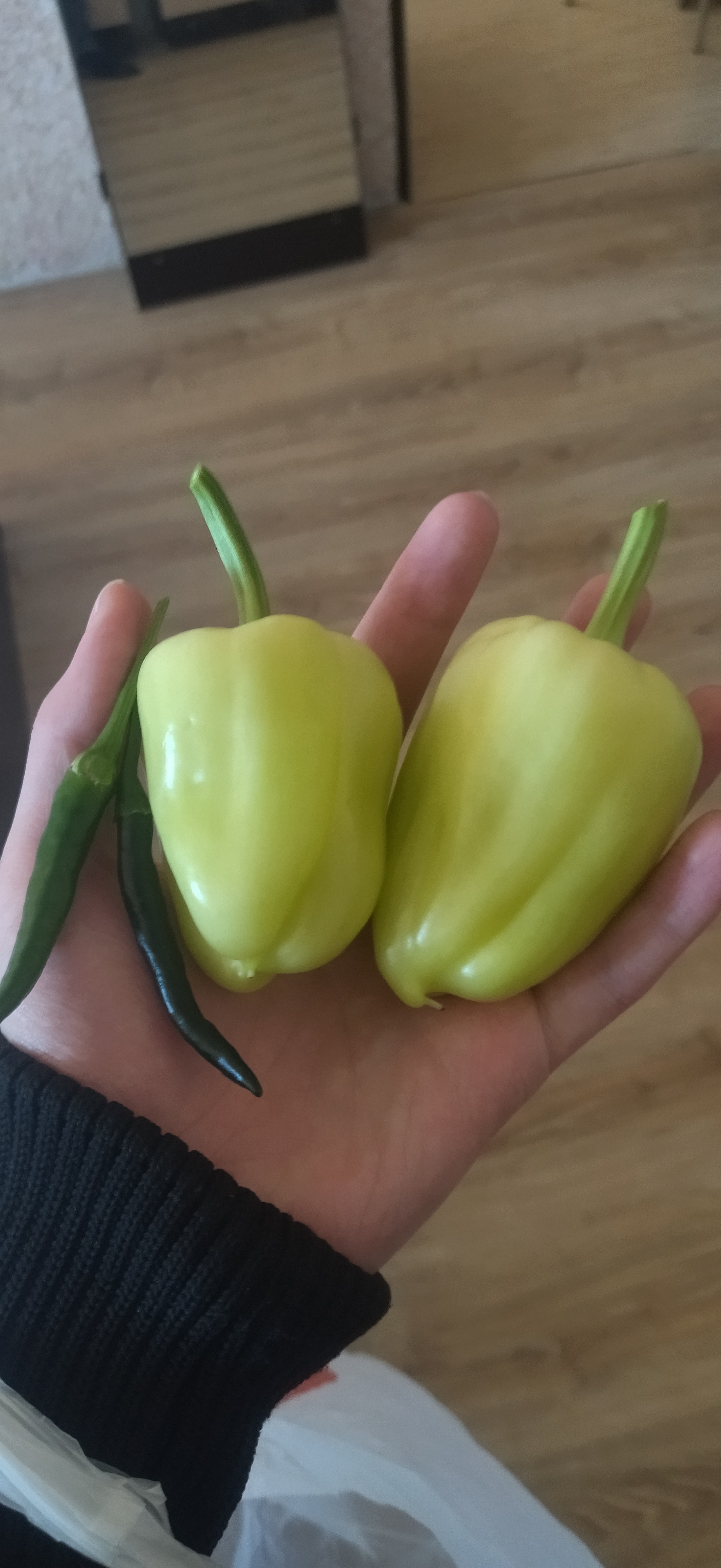 За день до этого фото, снял свой первый урожай Зелёных перцев. (Острые халапеньо затесались в фотку по ситуации.)