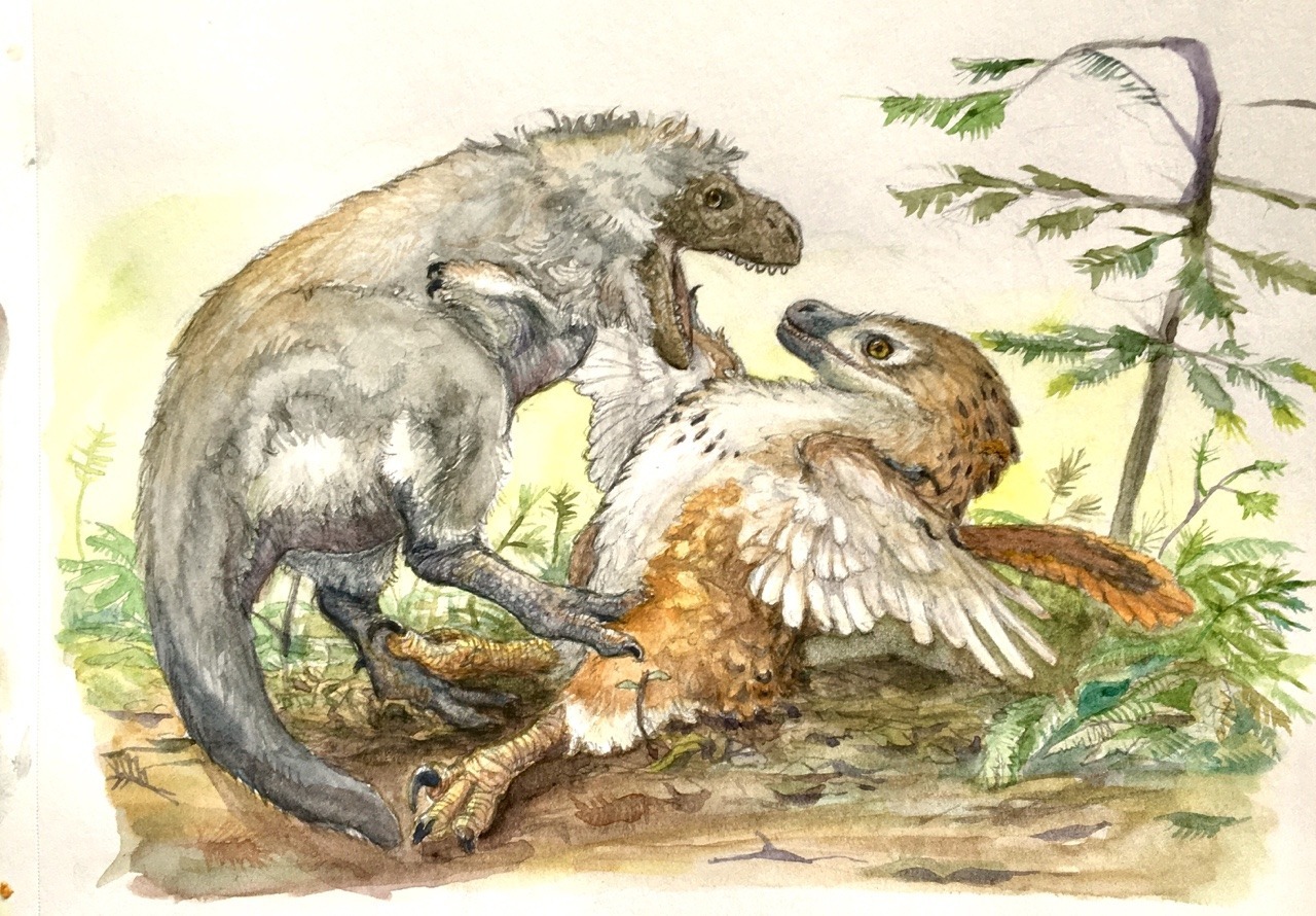Молодой и неопытный тиран в смертельной схватке с дакотараптором