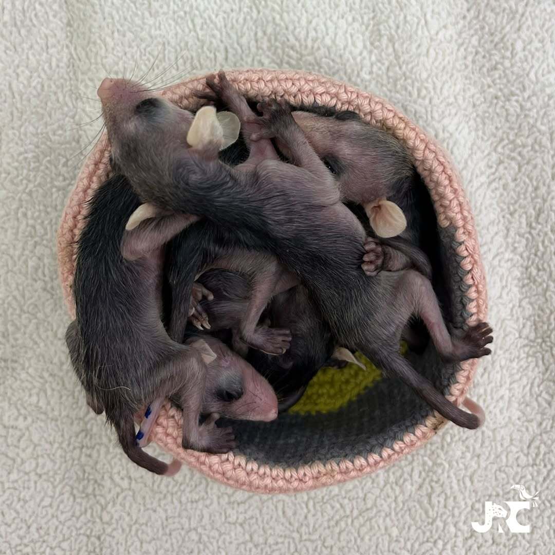 Семеро южных опоссумов, возрастом чуть больше месяца, потеряли свою мать. У них не было никаких травм, но их глаза все еще были закрыты, и они были покрыты лишь легким слоем шерсти, очевидно, они были очень молоды и нуждались в уходе.