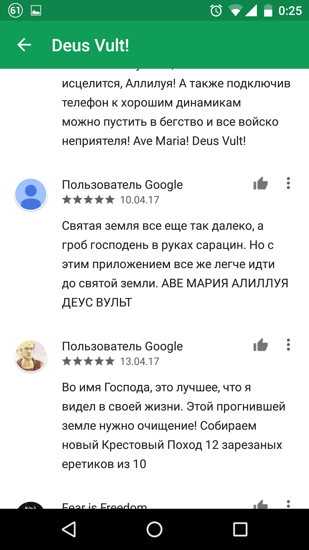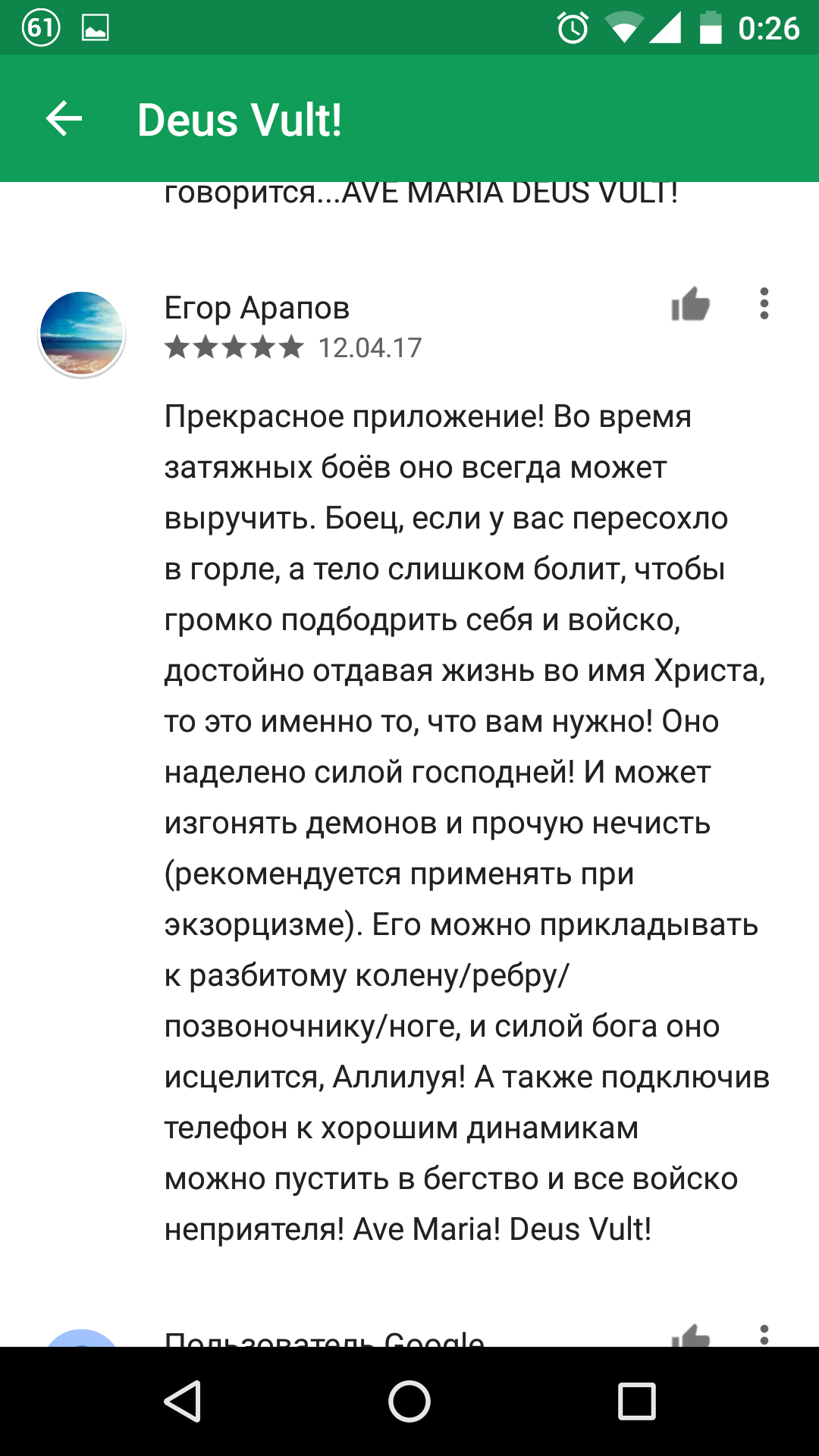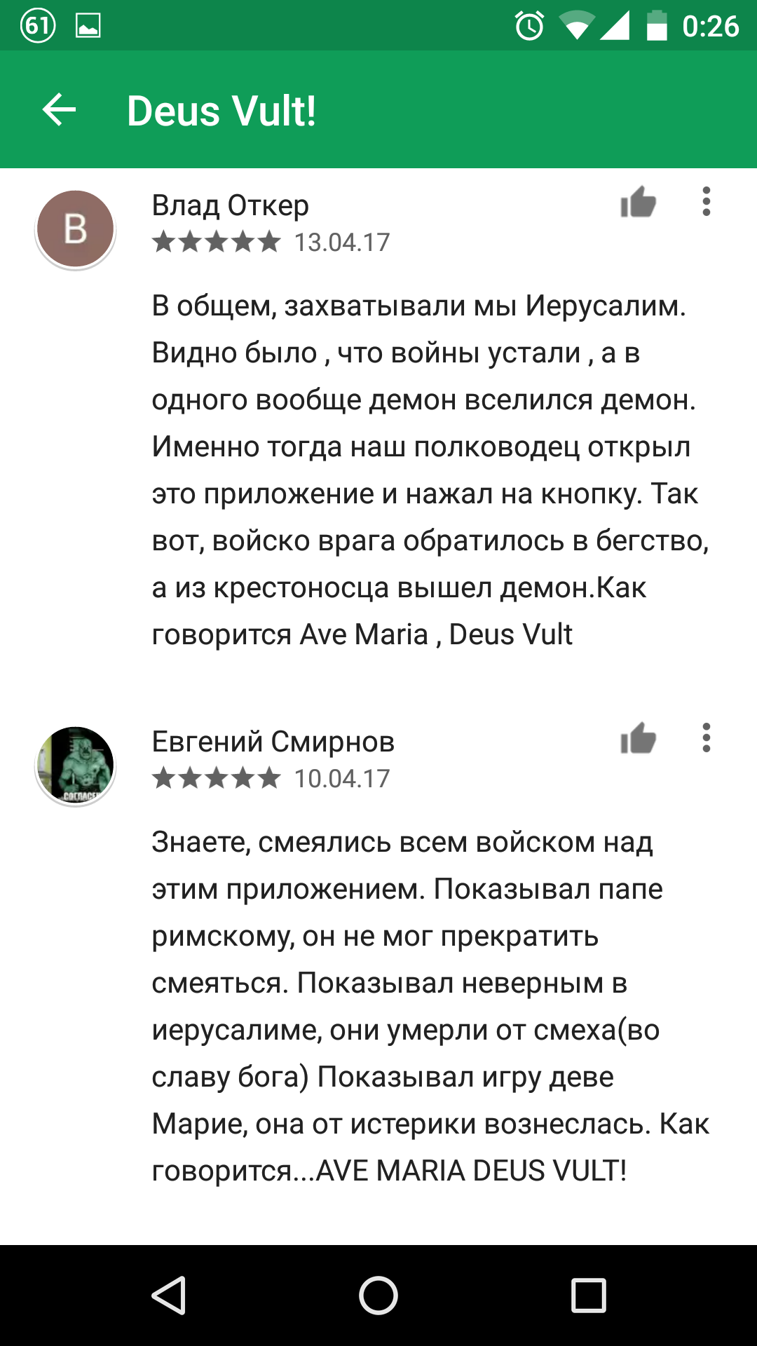 20 KOHCTPYKTOP Deus Vult! 8 лет назад Наткнулся в Play маркете на такое приложение. Комментарии порадовали. Deus Vult Google Play Комментарии Скриншот Длиннопост