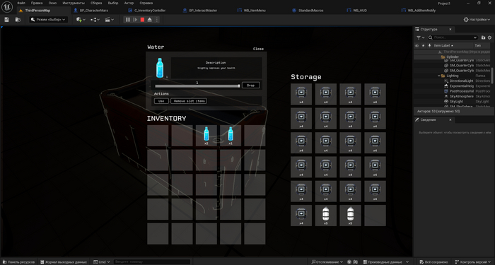 Мы наконец закончили работу над инвентарём нашей игры - основополагающую систему игры. После недавних изменений в нашем проекте, систему пришлось делать заново с полного нуля и мы её сделали!