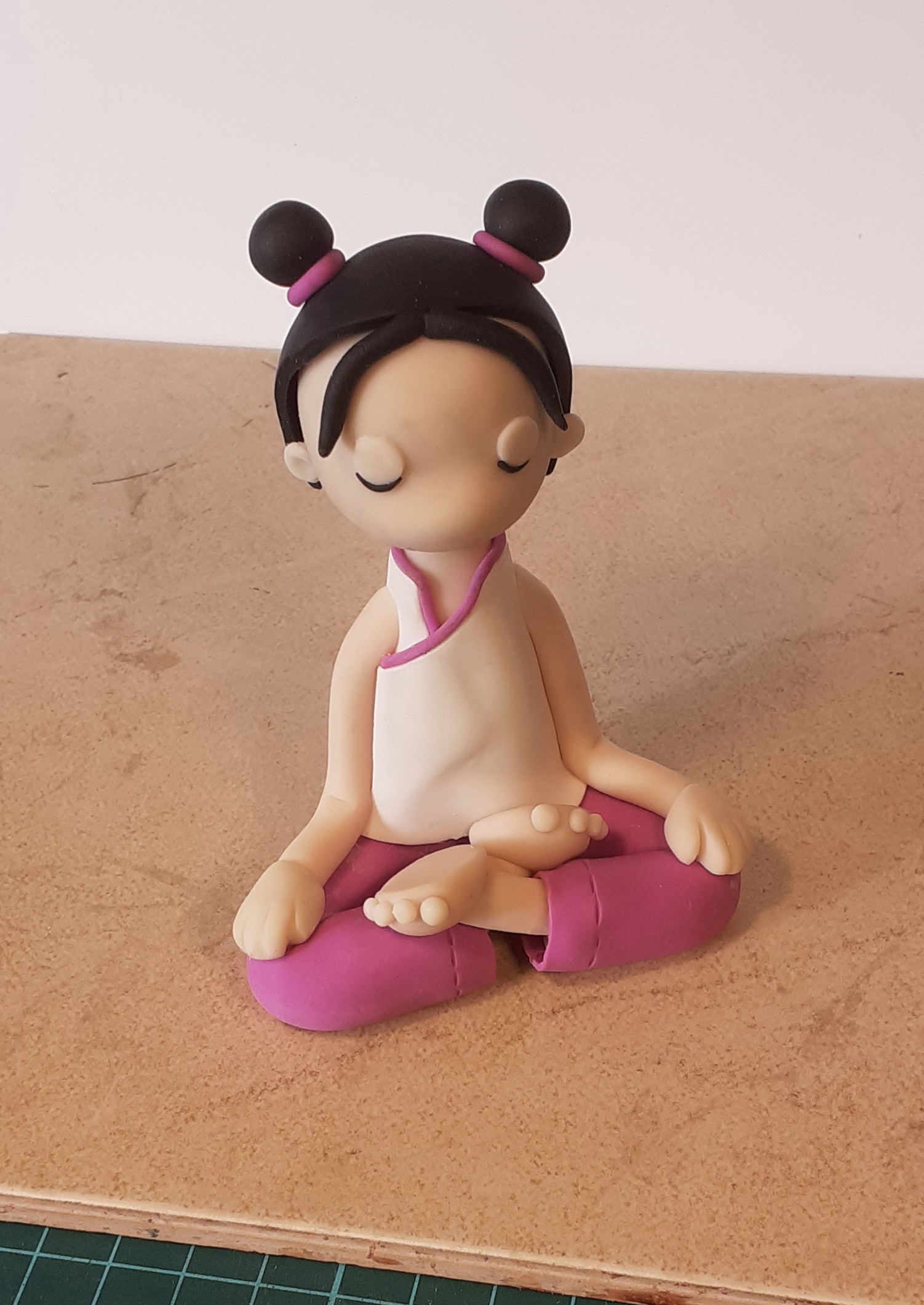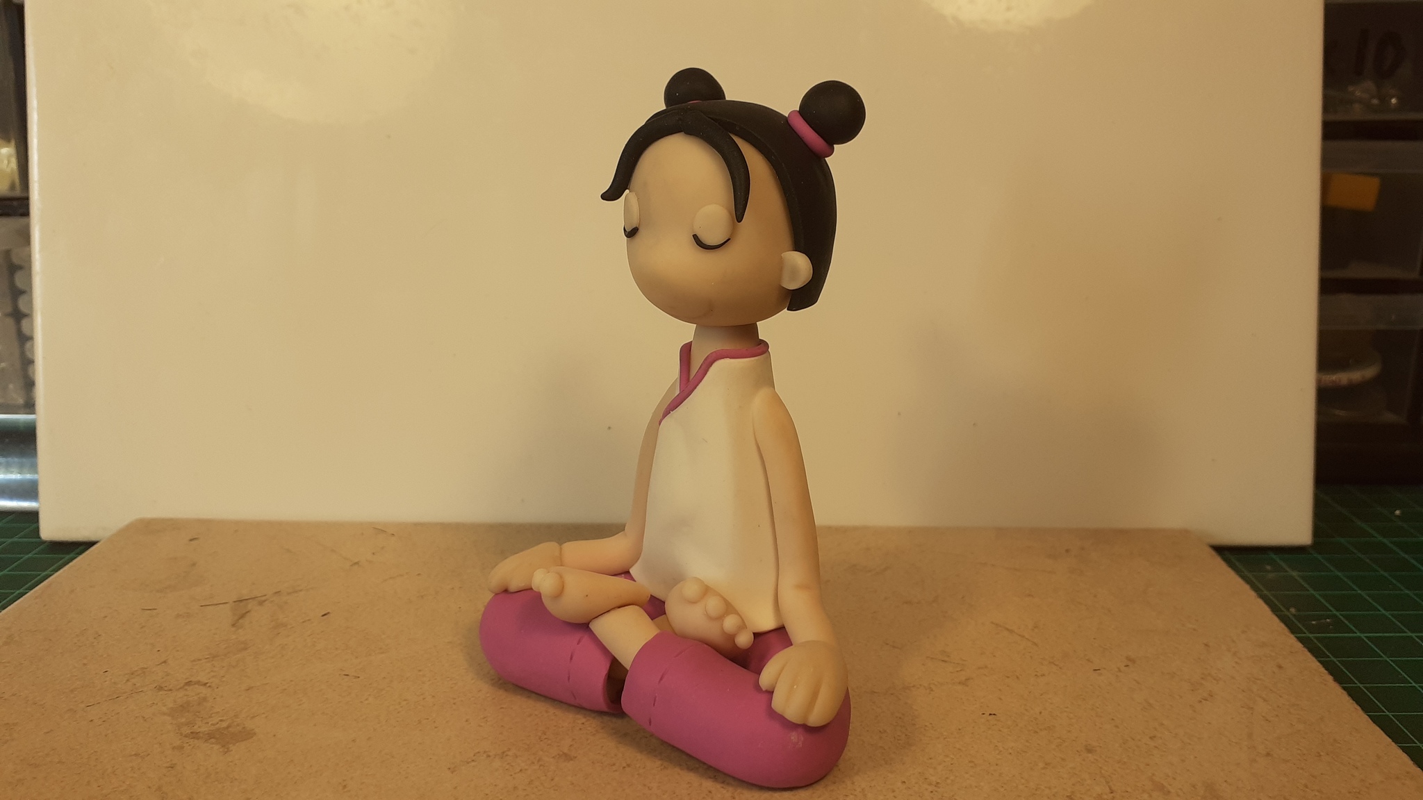 Лепил в подарок замечательному человеку. В качестве ТЗ была картинка из сети. Девочка получилась хорошо. Выглядит простенько, но этот ребёнок меня замучал))) Результатом доволен. Фотки корявые - знаю, но остались только такие. Девочка медитирует уже в новом доме.