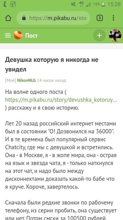 Спустя небольшое время я выбил себе повышение ЧСВ по курсам Cisco, и собрав спортивную сумку рванул в Нерезиновку ещё раз. По прибытию написал ей, и в ответ тишина. Я почти месяц торчал в Москве и не получил ни одного ответа ни на смс, ни на письма на @List.ru (ящик у неё был там). И за пару дней до отъезда я получил звонок с незнакомого номера, где она вялым голосом сказала что мама ей передала сообщения, но она не в силах мне нормально ответить.