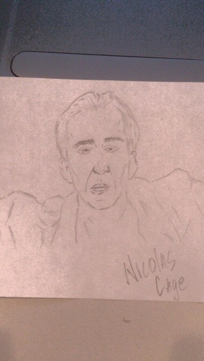 Мне на работе настолько скучно что я нарисовал Николаса Кейджа на листочке :D