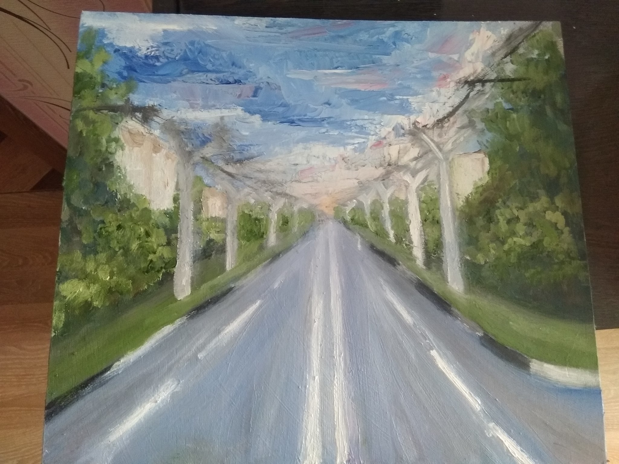 Раньше рисовала акрилом и гуашью, сейчас переходит на масло.