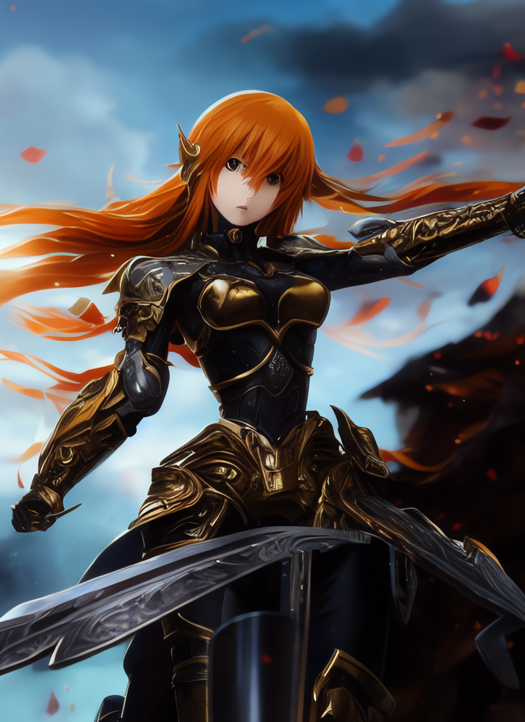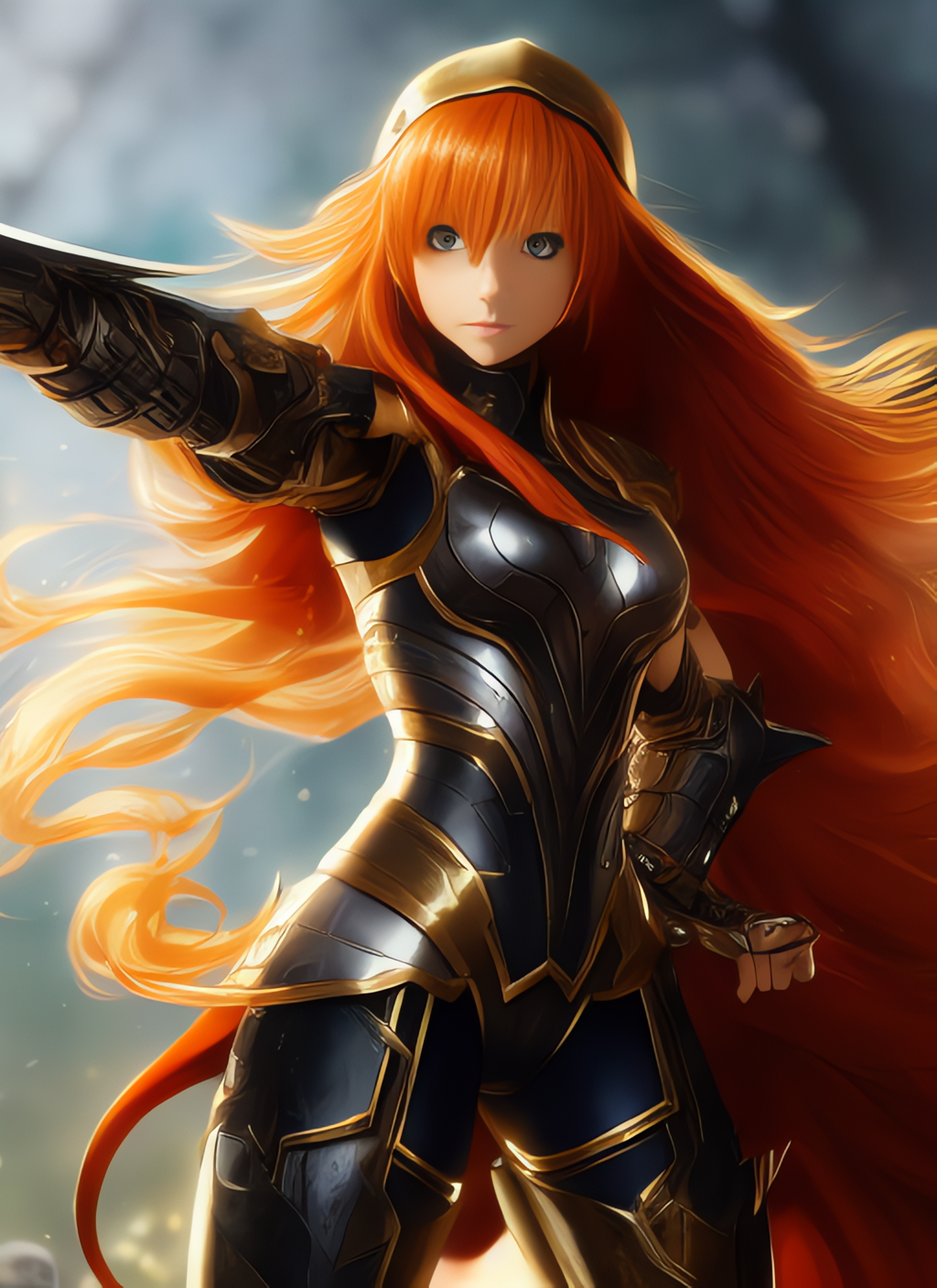 (anime style), a charming ginger warrior girl, perfect body, ((bokeh)), cloaked steel armor, dynamic pose, action, sparks everywhere, winged helmet, portrait, intricate, ((dramatic detailed background)), ((symmetric highly detailed eyes)), more details, ambient light, concept art, digital art, painting, artstation, Miho Hirano