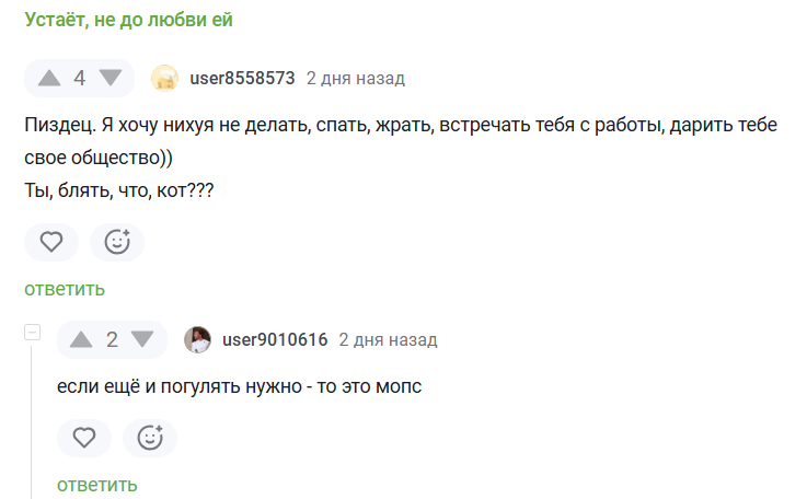 А ведь реально. Заводит девушка кота, тот лежит, жрёт, встречает тебя как ты приходишь с работы, ты кормишь кота, кот ластится к тебе... она смотрит на это, и думает, я тоже же кошечка... я так же хочу)))