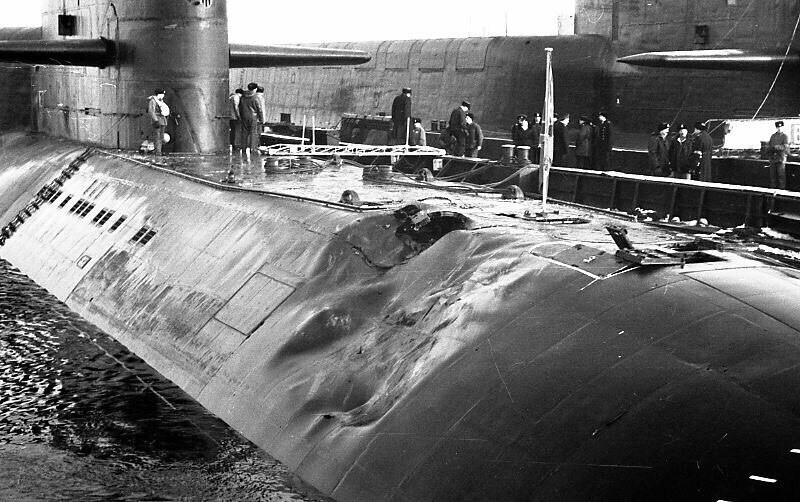 💥 В 6 часов утра, в результате попытки скрытного слежения, произошло столкновение атомной подводной лодки SSN-646 «Grayling» («Хариус») (типа «Rturgeon») ВМС США с ракетным подводным крейсером стратегического назначения К-407 проекта 667БДРМ в Баренцевом море недалеко от острова Кильдин (в полигонах боевой подготовки Северного флота). От ядерной катастрофы мир отделяли 20 метров.
