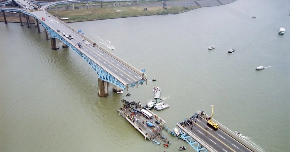 🌉 В Сеуле произошло обрушение моста Сонсу, в результате которого погибло 32 человека, в том числе 29 пассажиров автобуса. Трагедия была вызвана структурными дефектами моста и увеличением трафика, что привело к его перегрузке. Это событие оказало значительное влияние на строительную индустрию Южной Кореи и привело к отставке мэра Сеула.