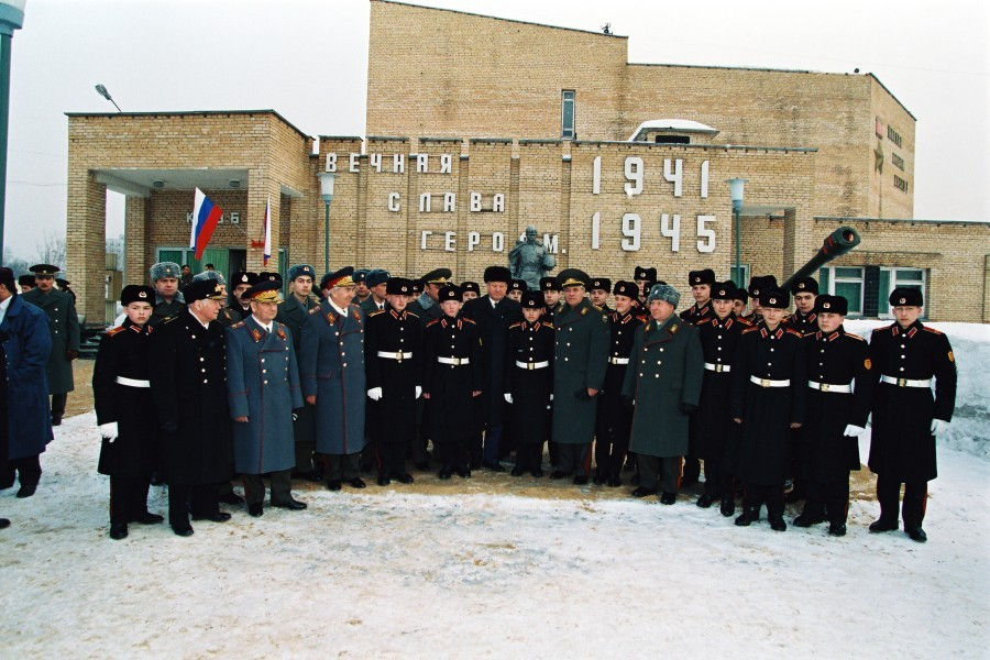 Затем, в сопровождении Павла Грачева находился в Московском суворовском военном училище, где выступил с краткой поздравительной речью