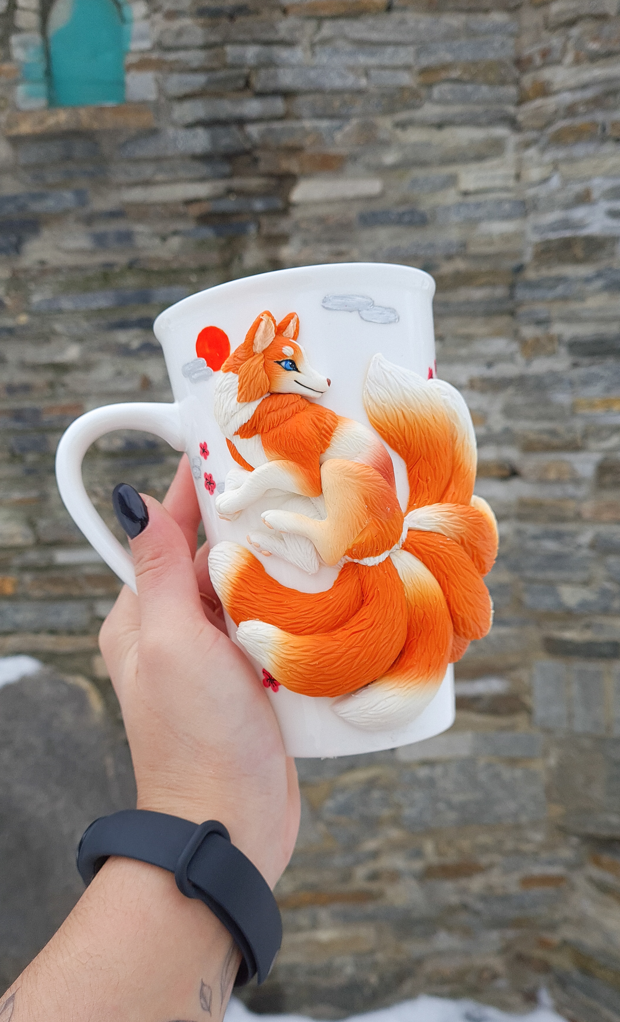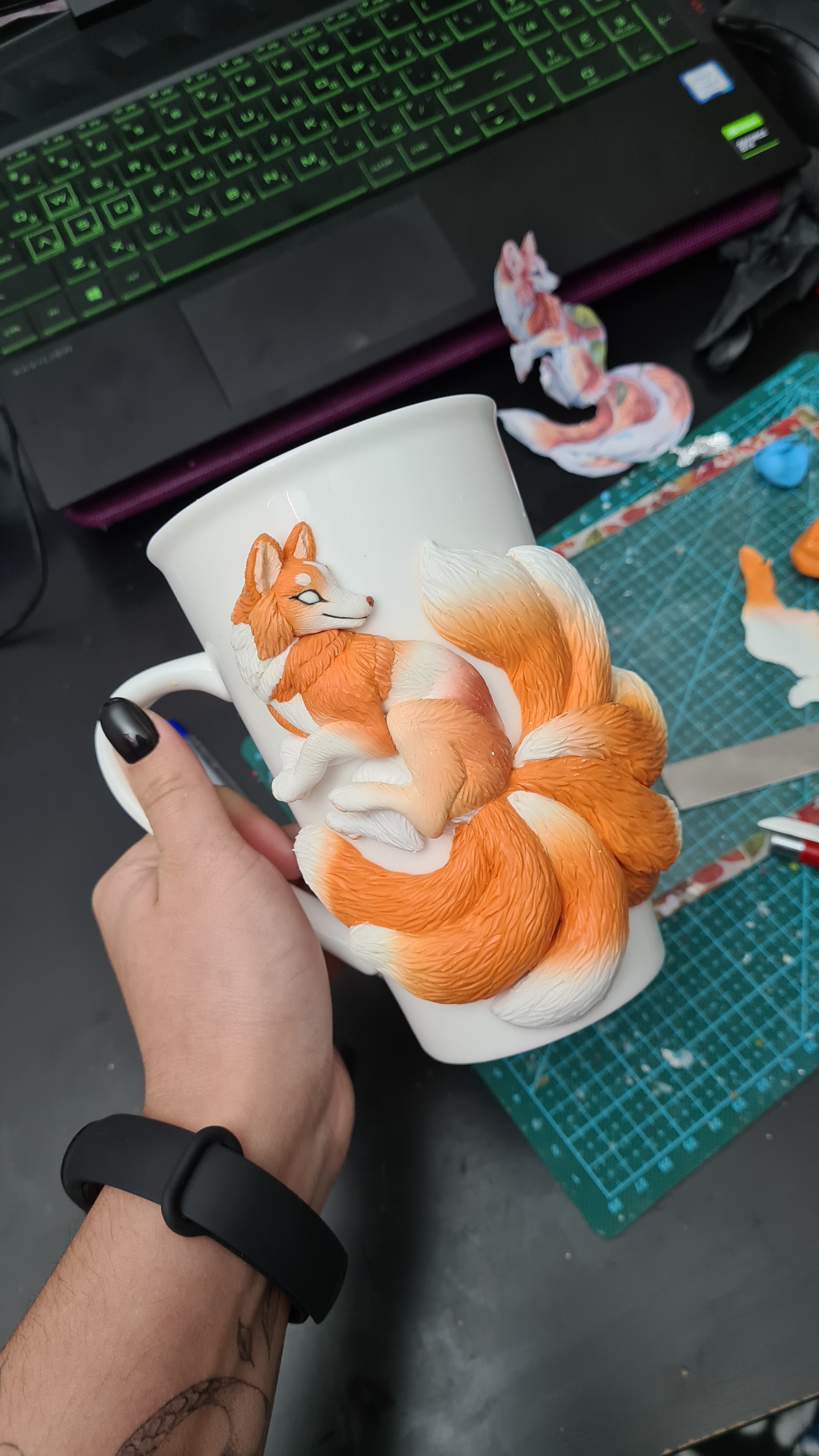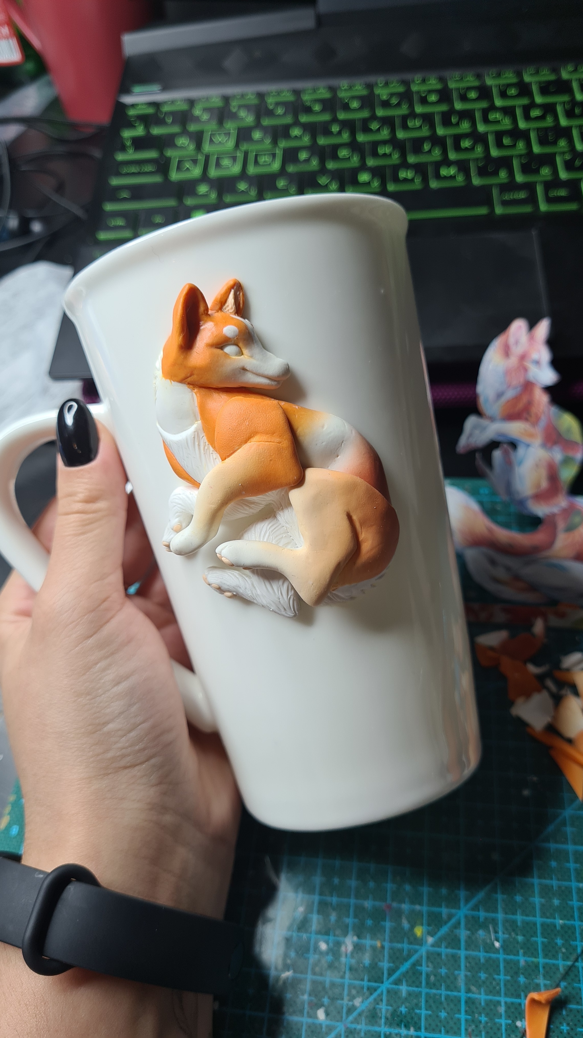 Вот так Кицунэ отправилась уже запекаться. После была роспись глаз и самой кружки по желанию клиента.