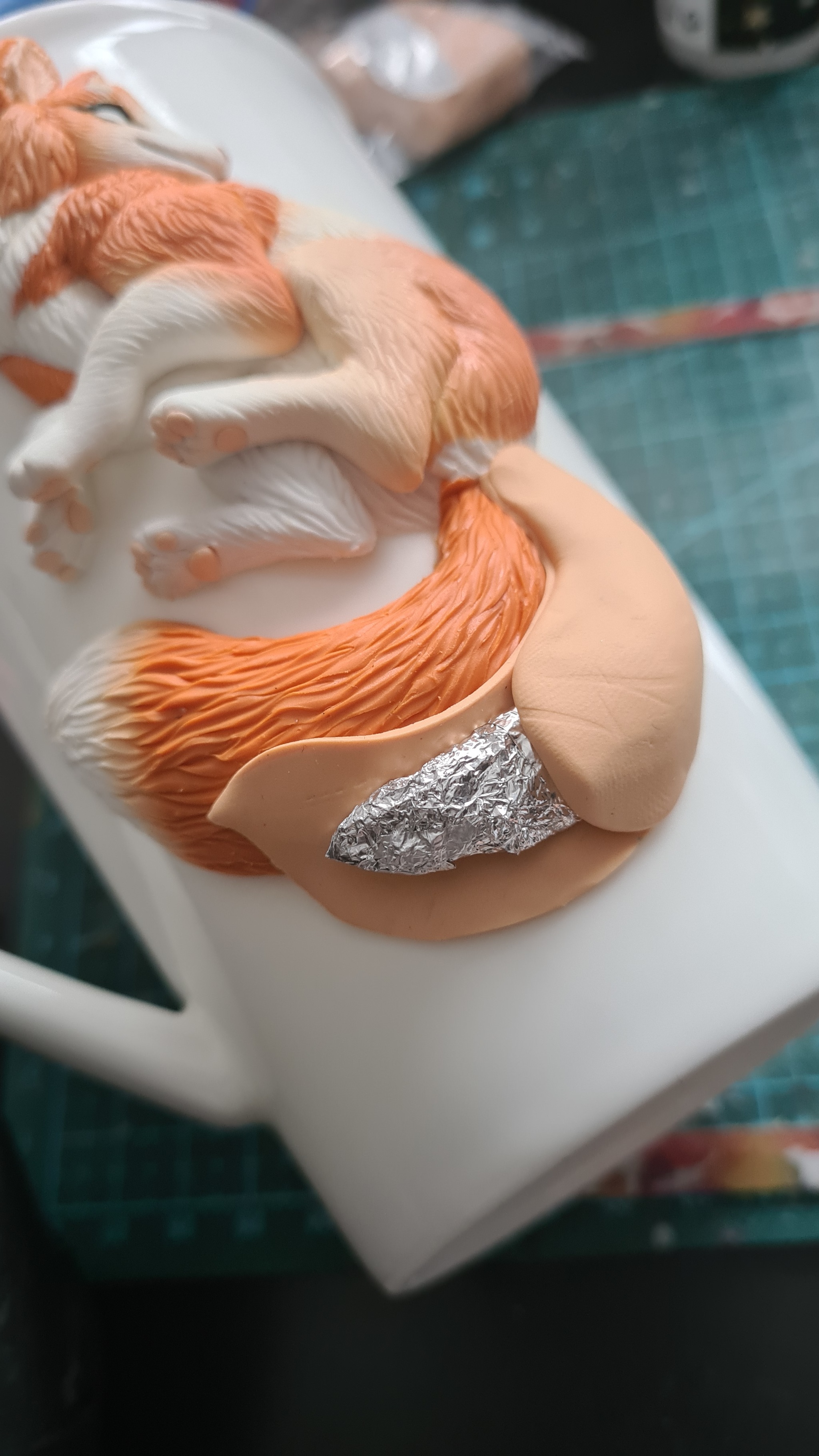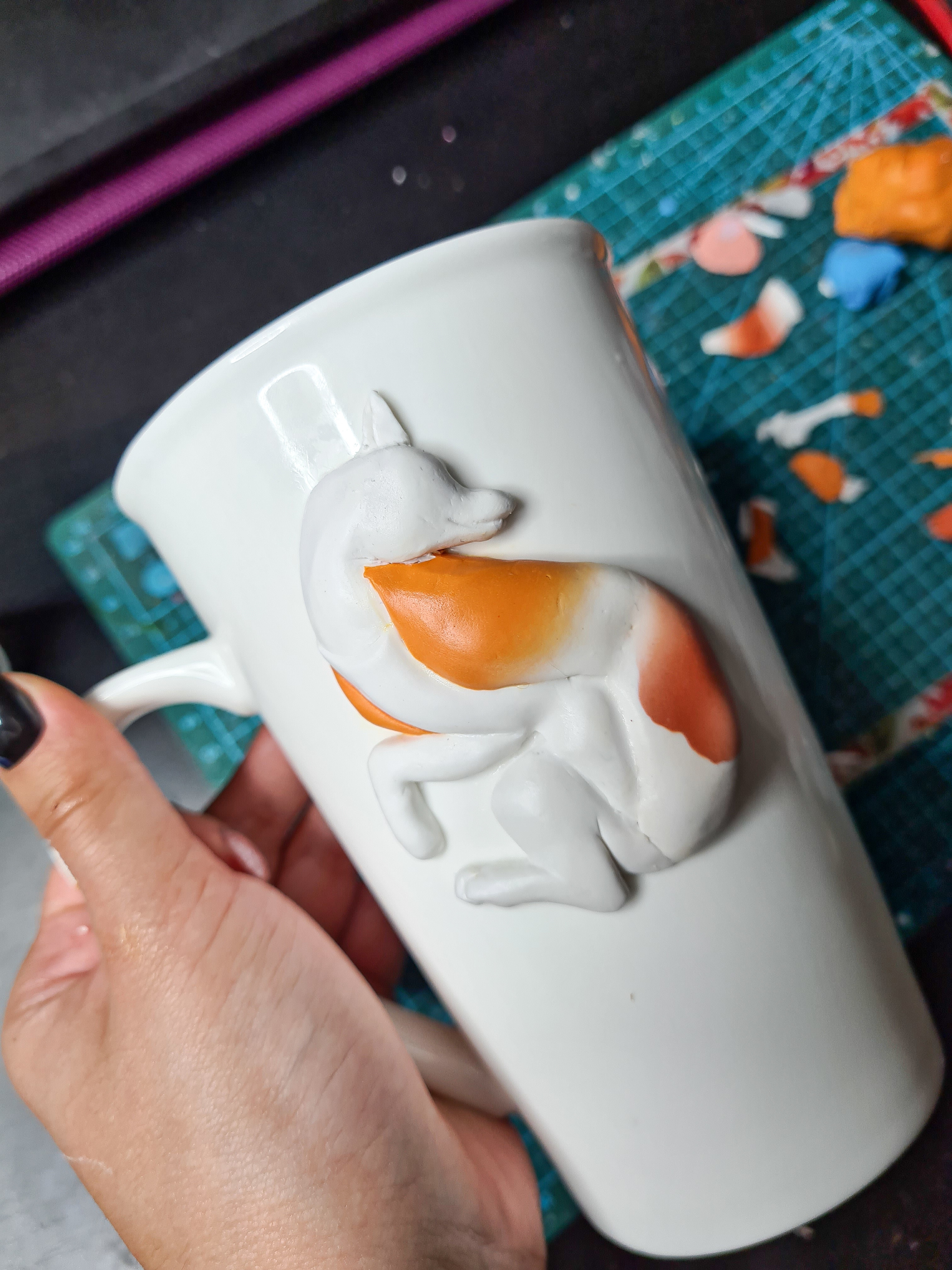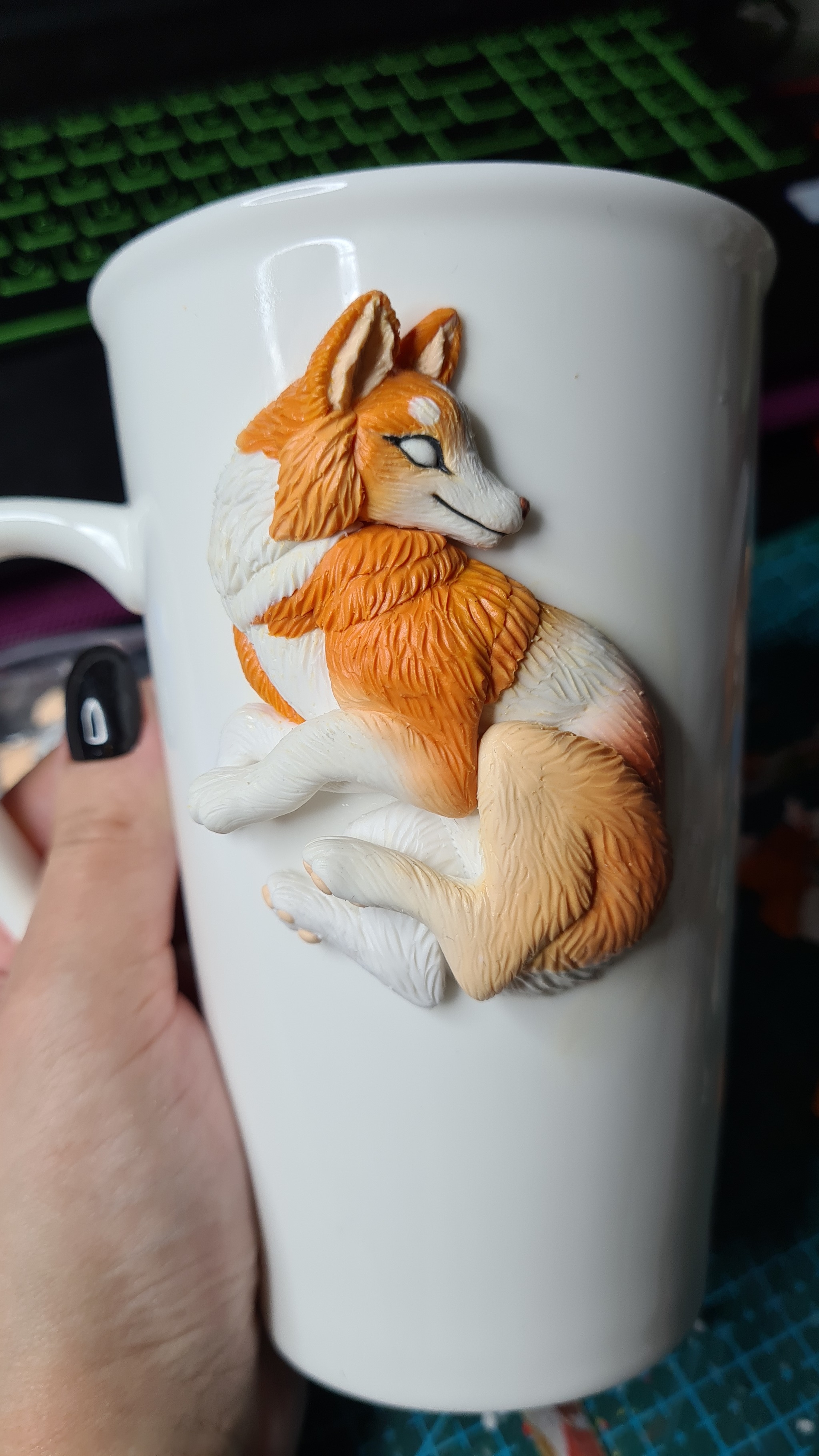 Вот так Кицунэ отправилась уже запекаться. После была роспись глаз и самой кружки по желанию клиента.
