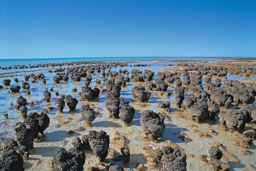 Современные строматолиты в бассейне Хамелин, Шарк-Бэй, (Австралия). Фото из открытых источников интернета.