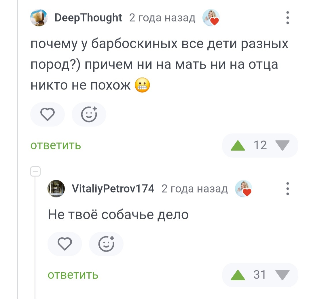 398 ialyuba Действительно, почему? 4 месяца назад #comment_274286375 Комментарии на Пикабу Юмор Барбоскины Мультфильмы Скриншот 50 2 1 1 1 Ещё 0