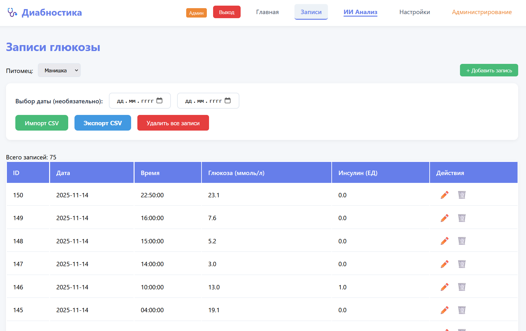 UPD: Если кто-то из ветеринаров читает - буду рад обратной связи по функционалу. Что еще нужно добавить для удобства работы с диабетиками?