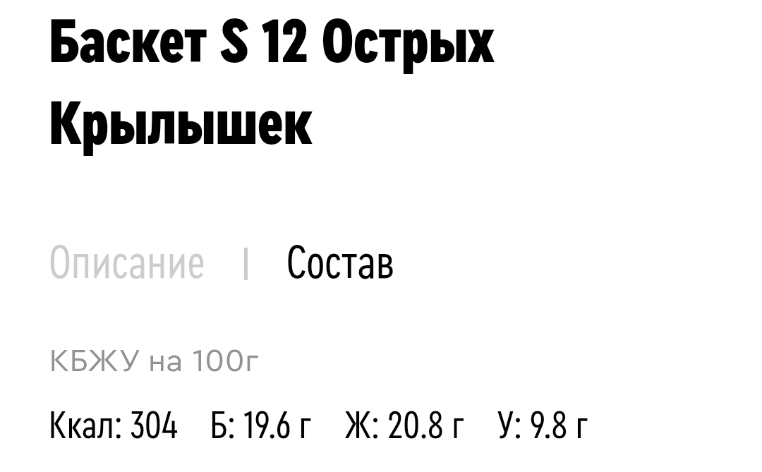 Одна ножка по стандарту KFC - 84 грамма, 229 калорий. В ассортименте есть баскет на 8 ножек. 1832 ккал, и еще кола 0,33 по 42 ккал - итого 1970. Простим тренеру небольшое преувеличение.