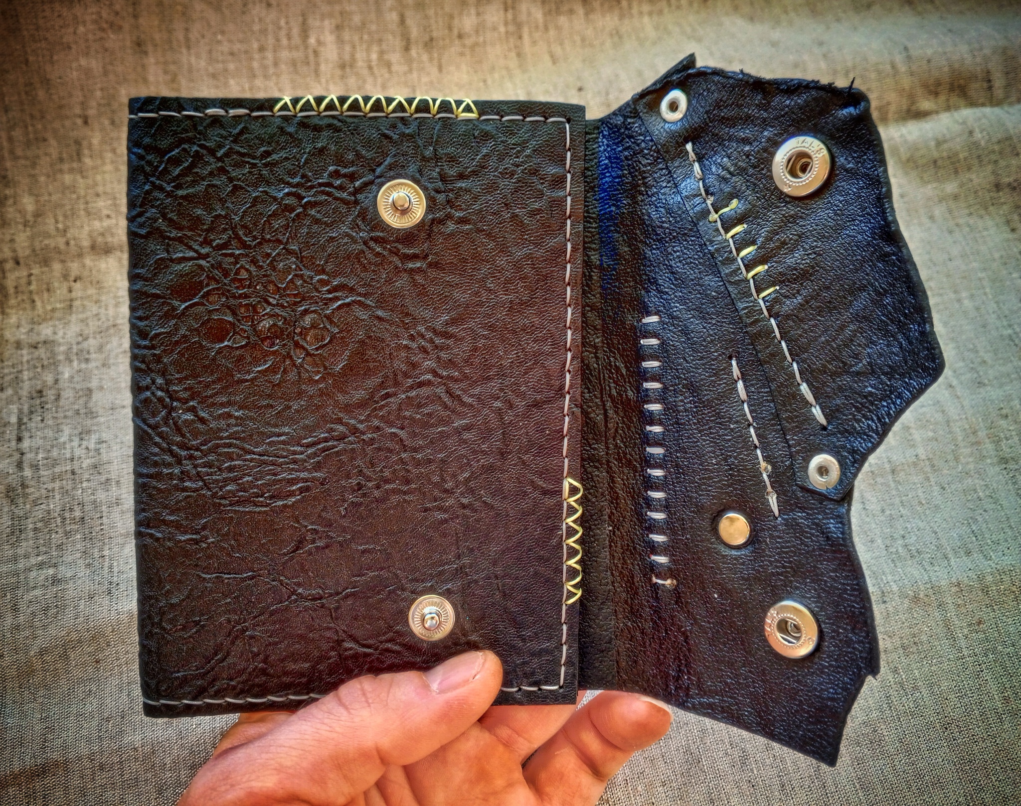 Речь сегодня пойдёт о обложке. Обычная обложка на паспорт в необычном исполнении. Чёрный цвет, кожа под жабу: