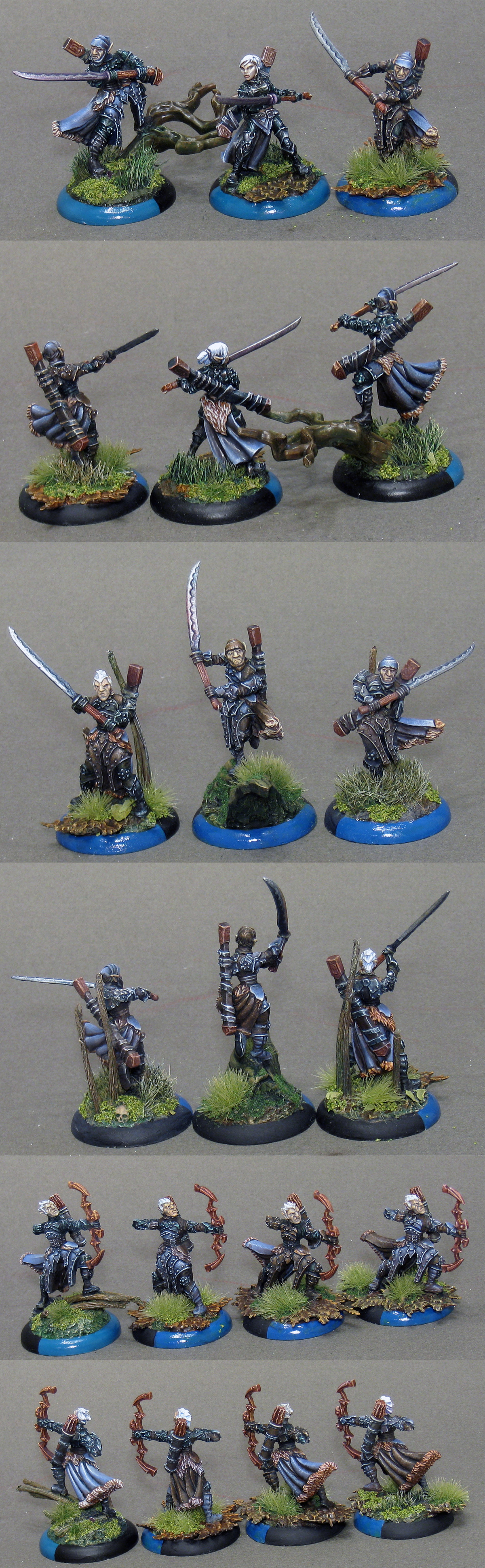 На самом деле это никакие не дикие эльфы, а Nyss Hunters и Lanyssa из варгейма Warmachine. Стандартный 32мм формат, красил себе на стол. Когда я завязал с настольными варгеймами, именно им повезло попасть в рай для солдатиков. Сейчас ими играют в ДнД.