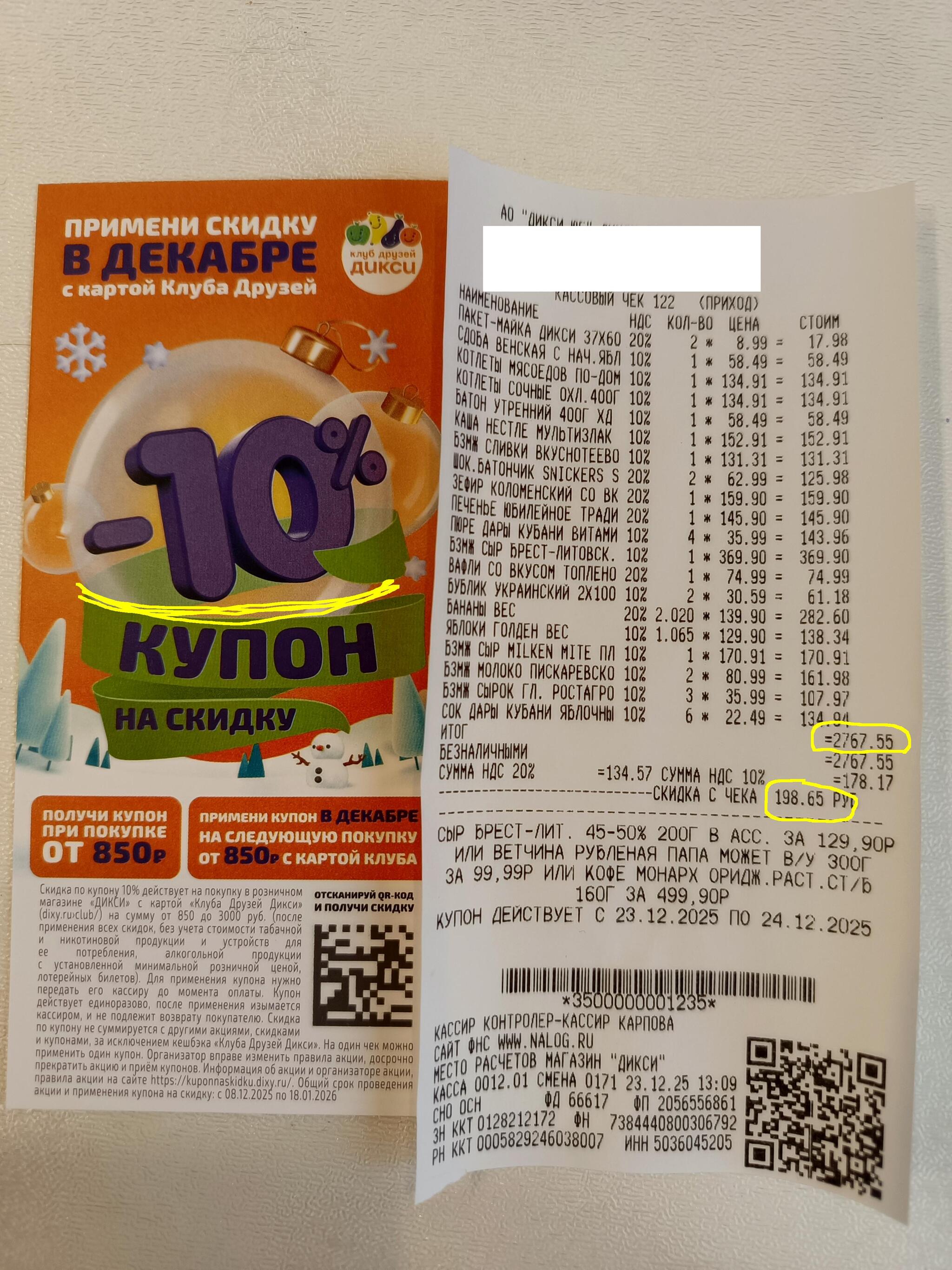 Hliabi.nebesnye Дикси. Альтернативная математика? 1 месяц назад Имеем чек из Дикси на сумму 2767₽ В чеке пробит акционный купон на 10% скидку Сумма скидки в чеке 198₽ Сумма чека до скидки 2767+198= 2965₽ Расчетная ожидаемая скидка 2965*10%=296₽ Внимание вопрос: где ещё 100₽ скидки? [моё] Дикси Обман клиентов Негатив Ещё 0